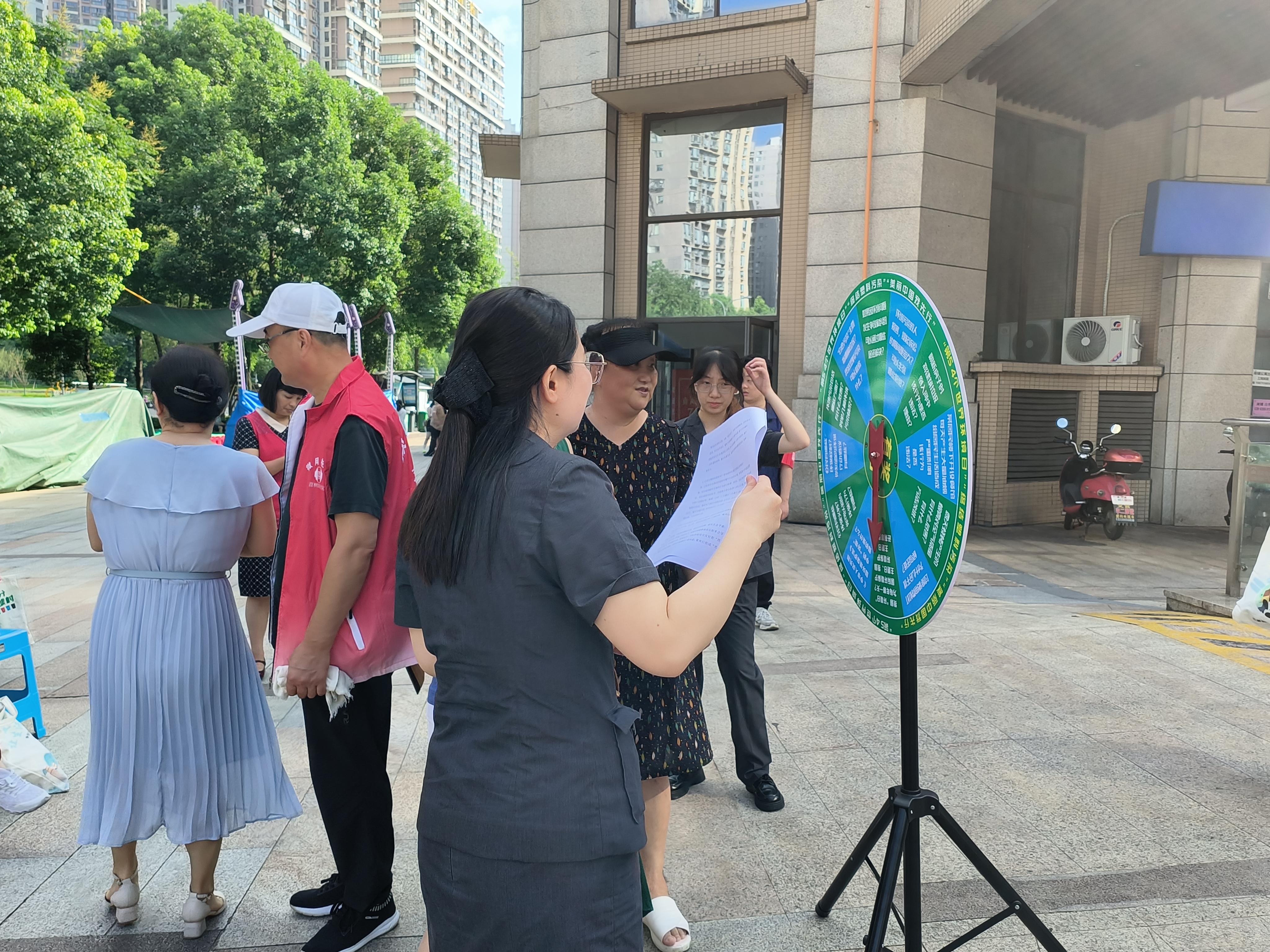 为帮助居民深入理解环保、调动居民积极性,活动特别设置了寓教于乐的互动环节。在“垃圾分类大作战”游戏中,居民们手持印有各类垃圾图片的道具卡片模拟分类投放,在游戏中掌握了分类要领;“环保知识竞答”环节则通过“大转盘抽题”和紧张刺激的“快问快答”形式,将法律条文和环保知识巧妙地融入趣味挑战。现场气氛热烈,居民们踊跃参与,欢声笑语不断,在轻松愉快的氛围中,环保理念和法律意识悄然扎根。