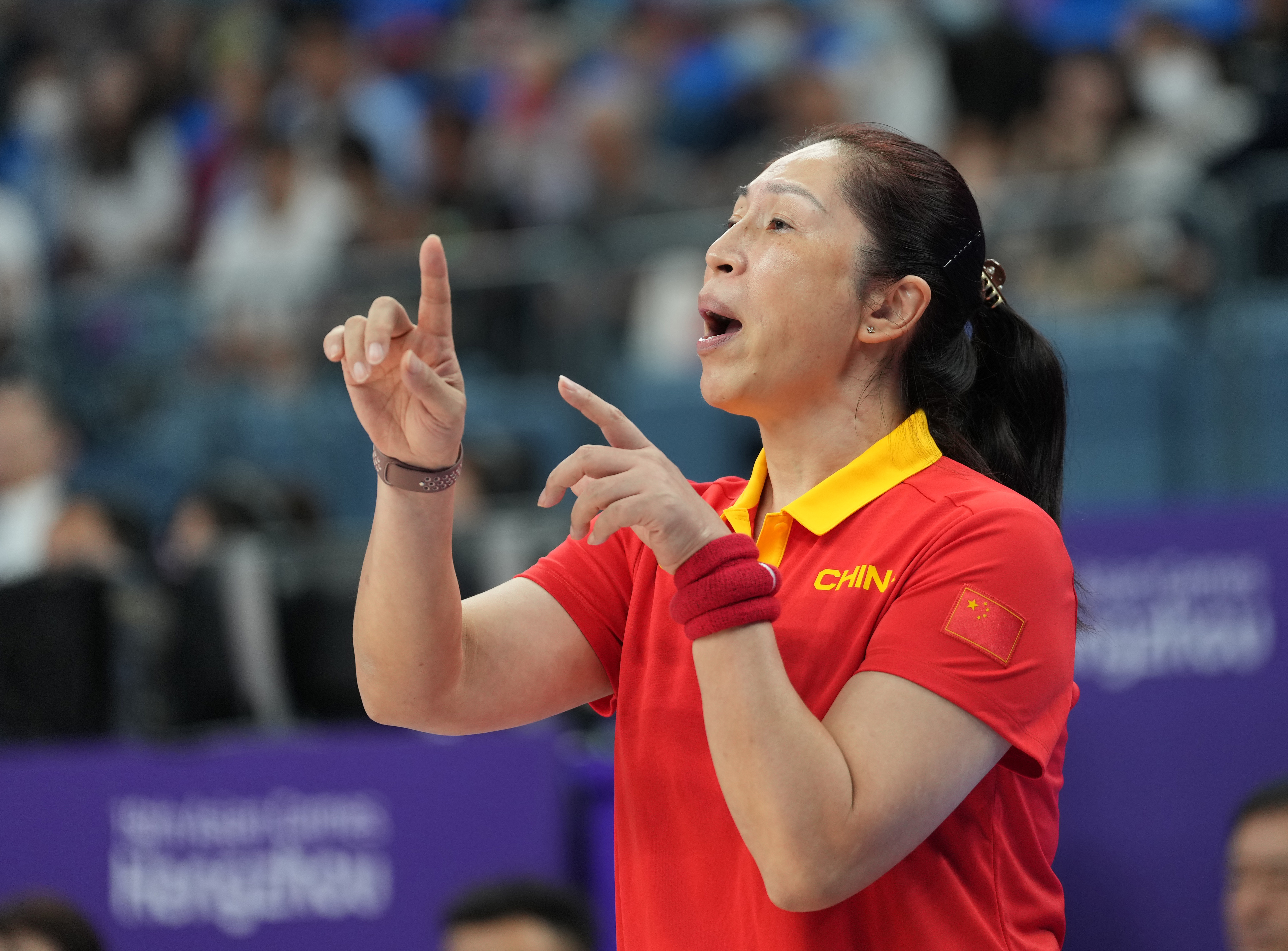 10月1日,中国队主教练郑薇在场边指挥。新华社记者 孟永民 摄