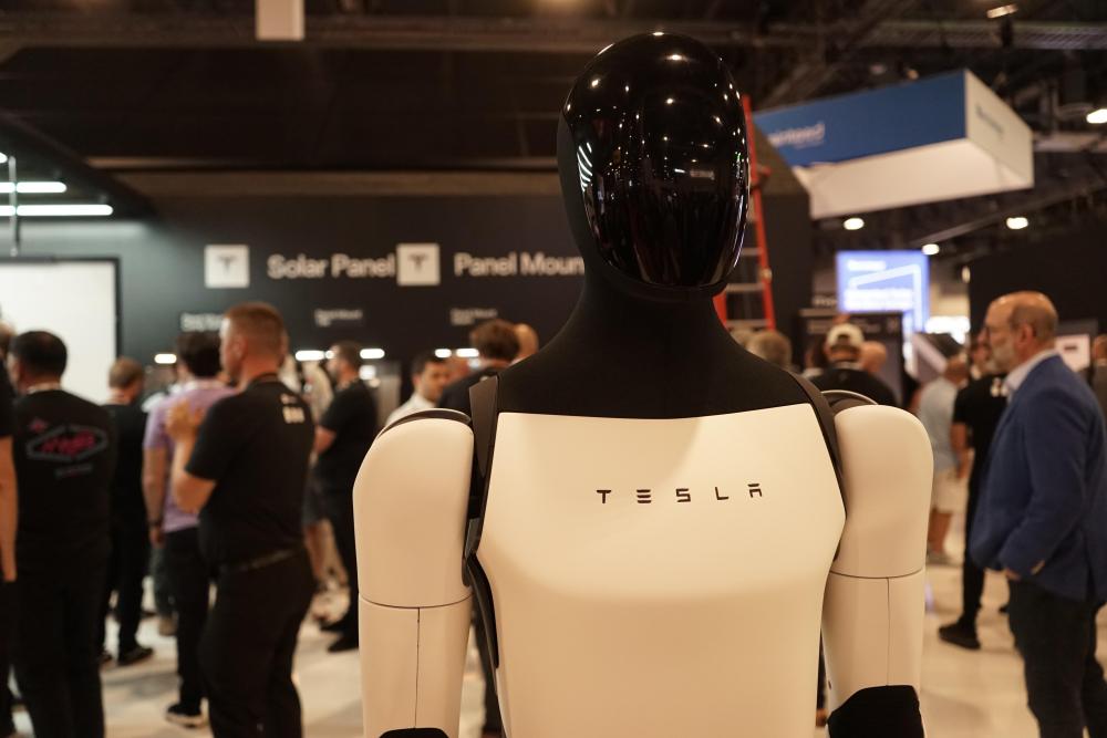 这是9月9日在美国拉斯维加斯举办的北美最大清洁能源展RE+展会上拍摄的特斯拉人形机器人。新华社发(曾慧摄)