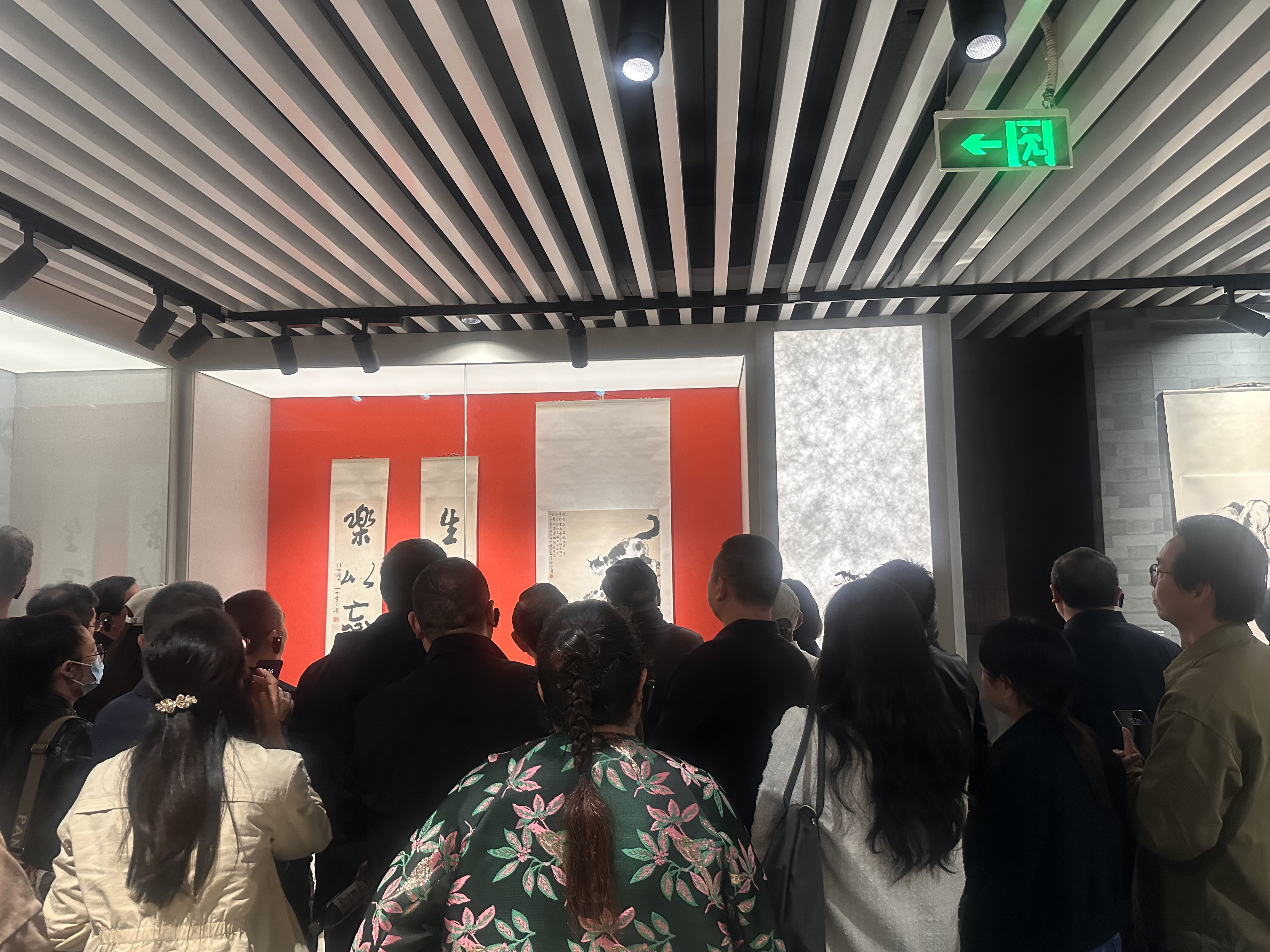 当天,罕见扇面《群奔》《奔马》与《墨马》《饮马》《枣红马》等作品,吸引观众驻足停留、连连点头。而当讲解员讲解到徐悲鸿画猫作品《故园之猫》时,观众把画作围了个里三层外三层,“这只猫画活了”,不断有观众发出感叹。
