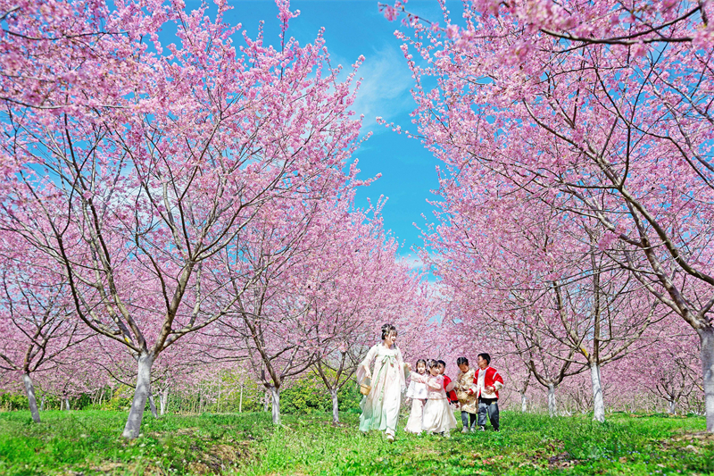 春风和煦,草木蔓发。位于滁州市马厂镇玉屏村的龙山樱花园的千亩樱花近日迎来盛花期。樱花盛放,犹如大片粉白相间的云霞。游客徜徉其中,就像置身于一幅粉色花海与淳朴村庄交相辉映的田园画卷之中,沉浸式体验欧阳修笔下“野芳发而幽香”的独特意境。