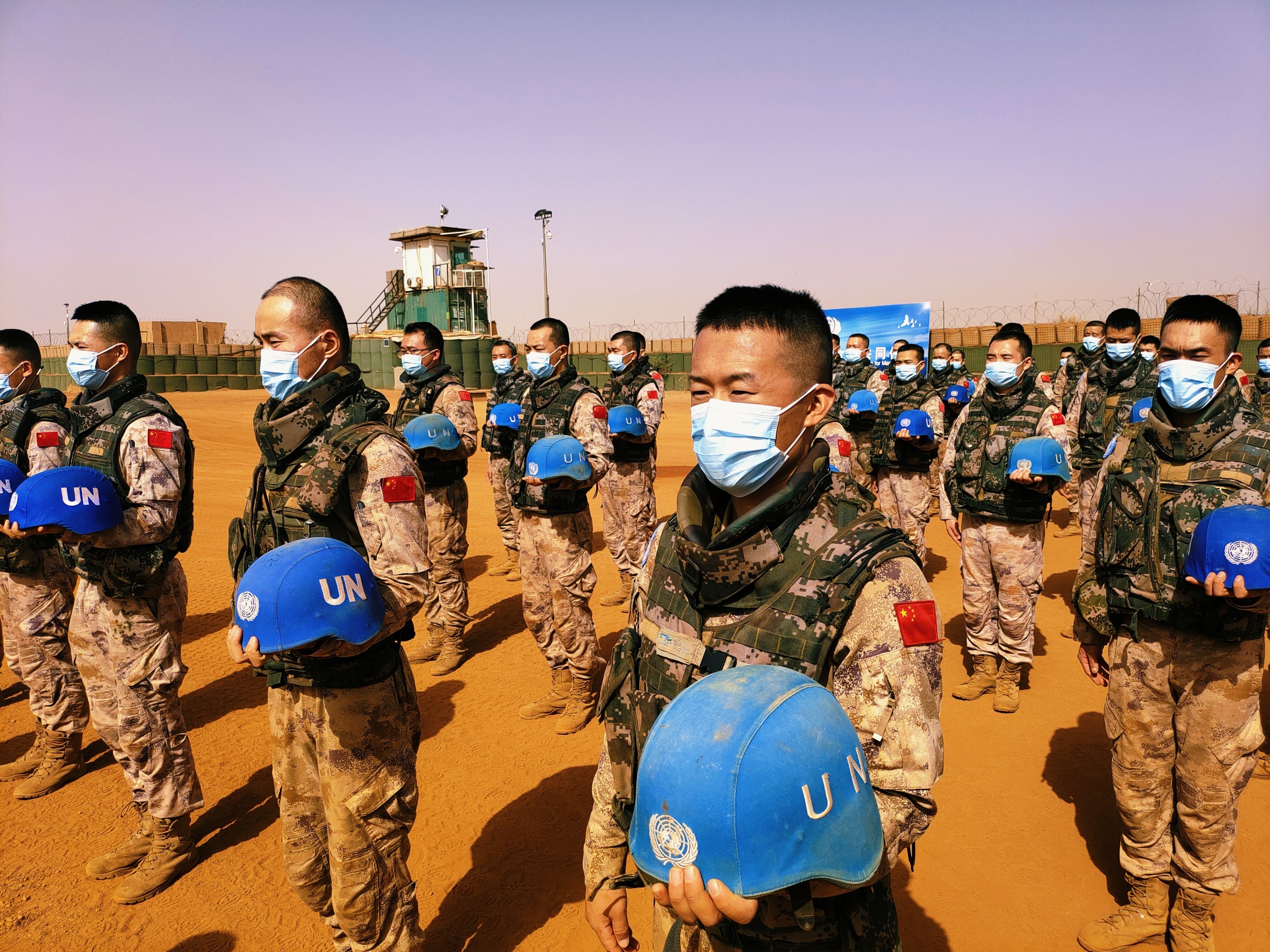 “我是中华人民共和国军人,代表祖国和人民赴马里执行维和任务……”仪式最后,工兵分队队长安少永用铿锵有力的话语,带领维和官兵重温出征誓词,这使官兵们回想起临行出征时的壮志誓言,激发了履行使命的高昂热情。