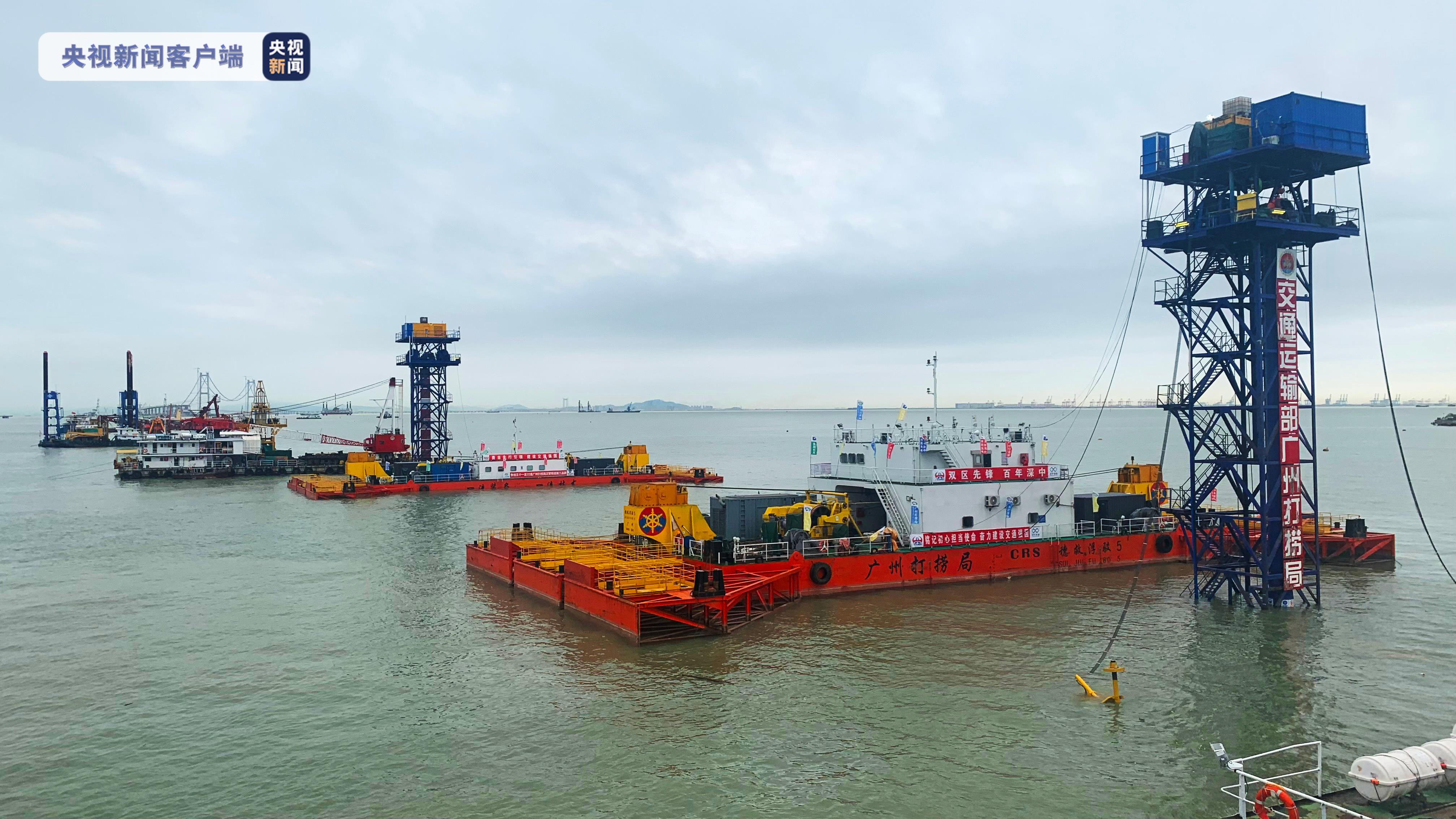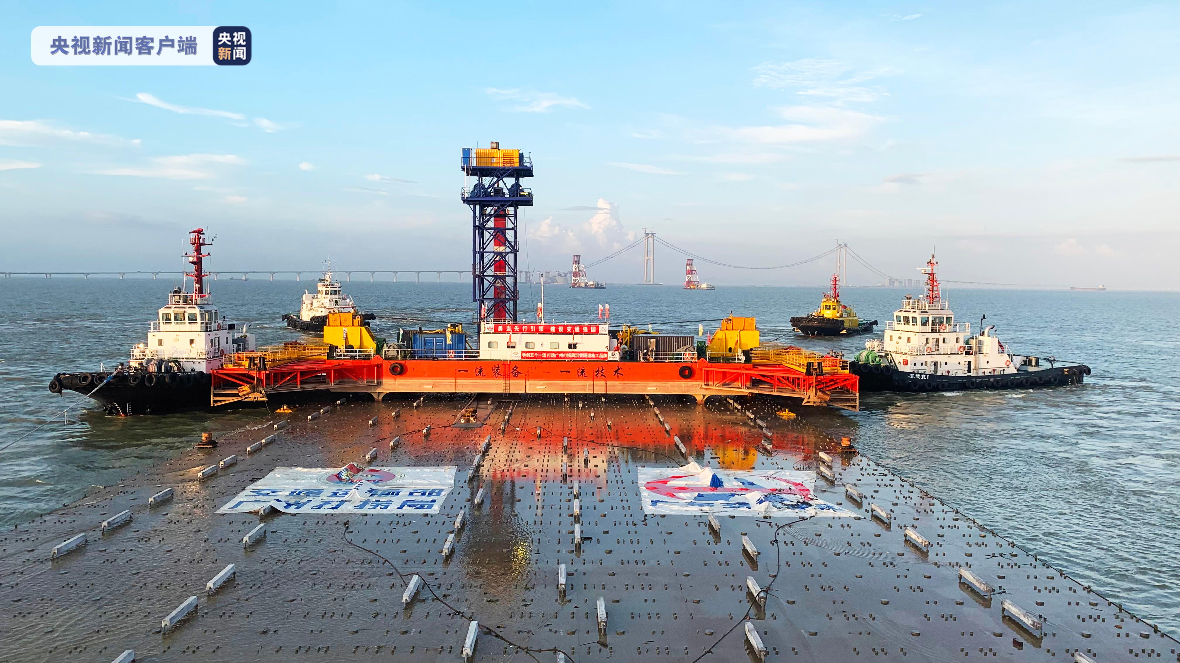 6月5日晚,E25管节在交通运输部广州打捞局拖航编队的拖带下扬帆起航,跨越珠江口最繁忙的伶仃航道和矾石水道,并于6日8时30分顺利抵达沉放安装水域,随即开展管节系泊、绞移等工作。