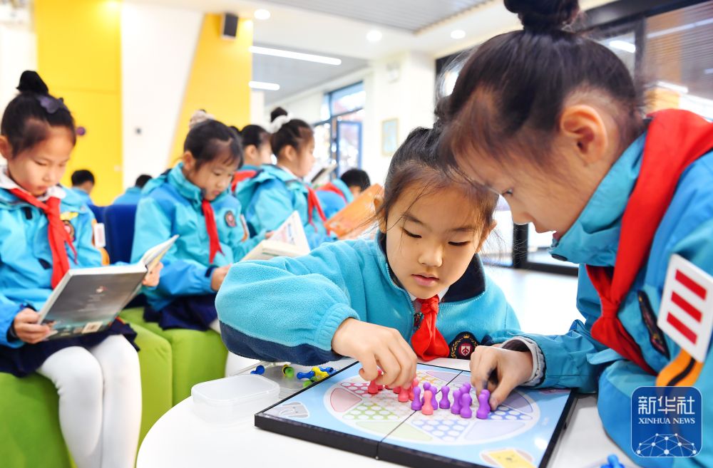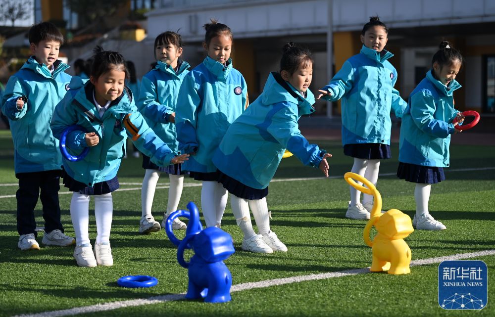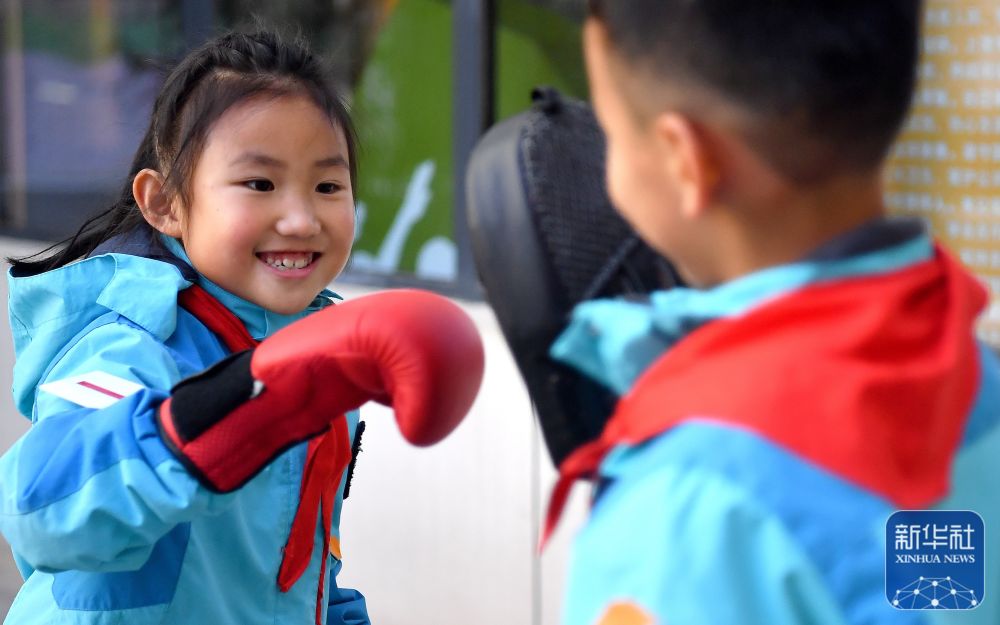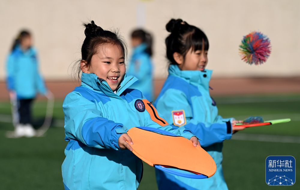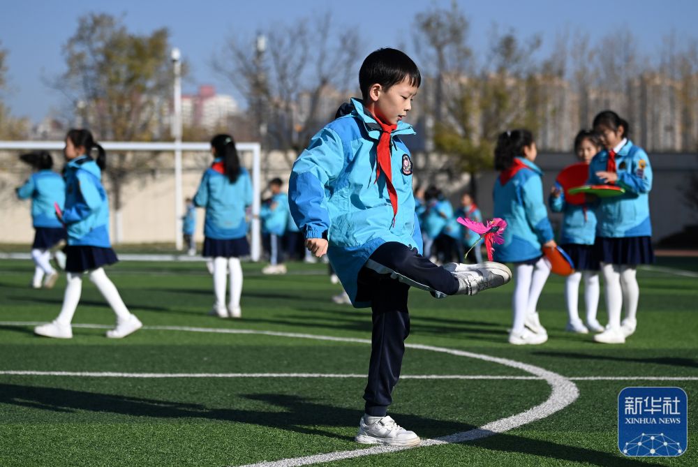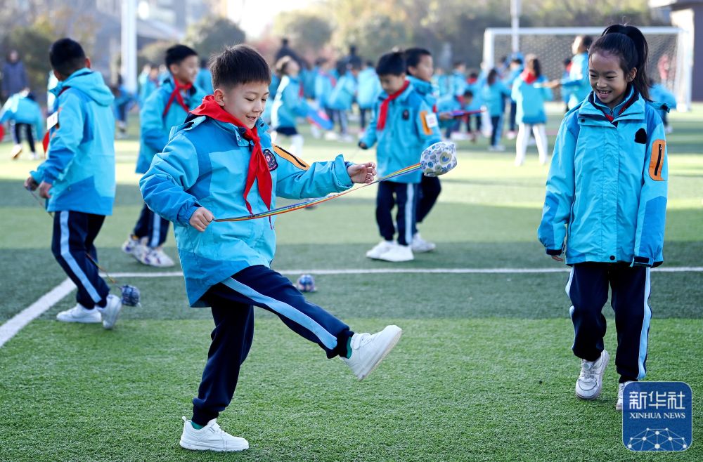11月27日,西安市曲江第六小学学生在进行课间活动。