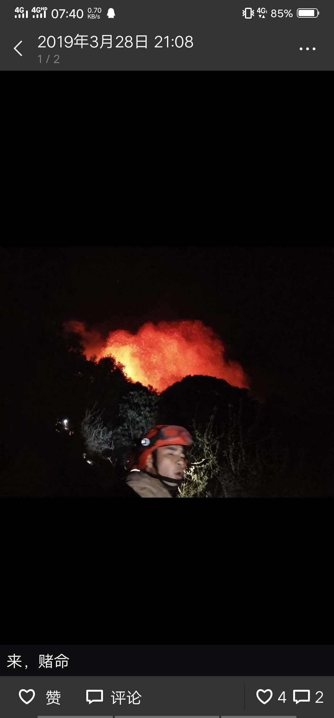 3月4日,他发了一条在火灾一线的视频,那时,火已经烧到眼前,他说,那是第一次体会到烟把自己包围的感觉。