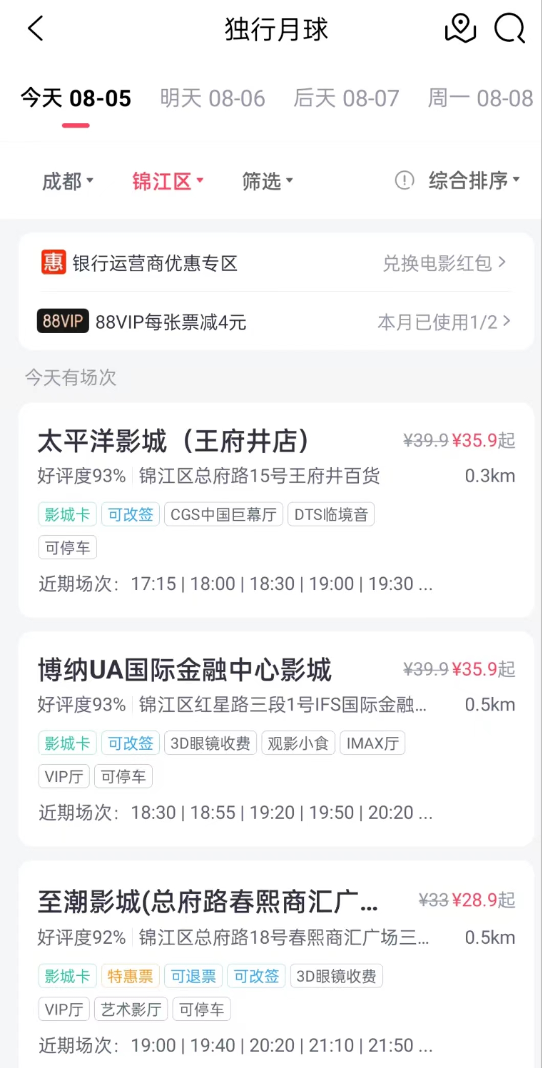 8月5日,在购票平台已经可以购买成都主城区不少影院的电影票。