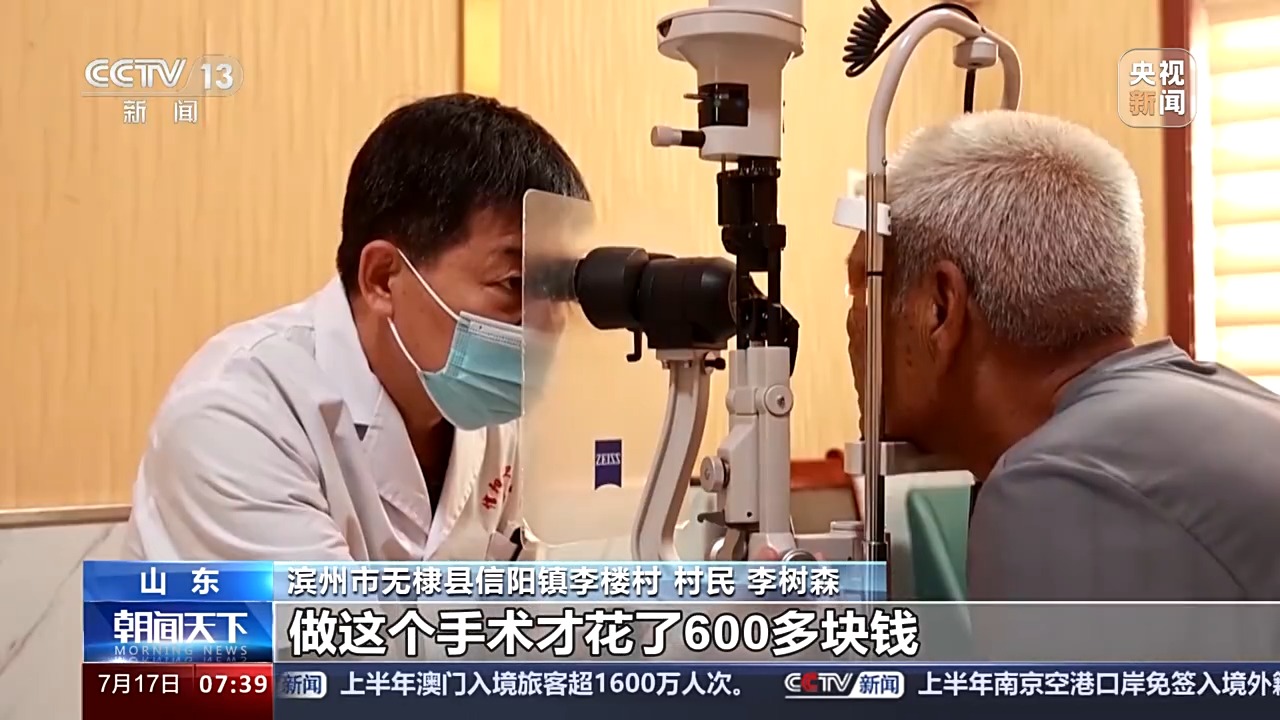 山东省滨州市无棣县信阳镇李楼村村民 李树森:我白内障已经好几年了,做这个手术才花了600多块钱,我做完手术以后觉得看东西特别清楚,我真是觉得得到实惠了。