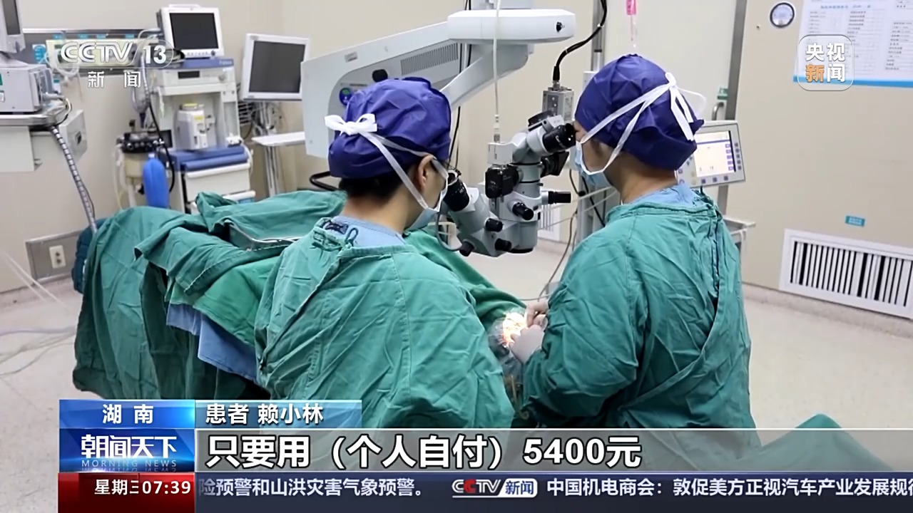 赖小林四年前双眼被诊断为并发性白内障,当时她花费1.7万多元为左眼植入人工晶体。这次人工晶体国家集采7月初在湖南落地后,赖小林专程过来给另一只眼做了白内障手术,右眼视力从0.08恢复到了1.2。