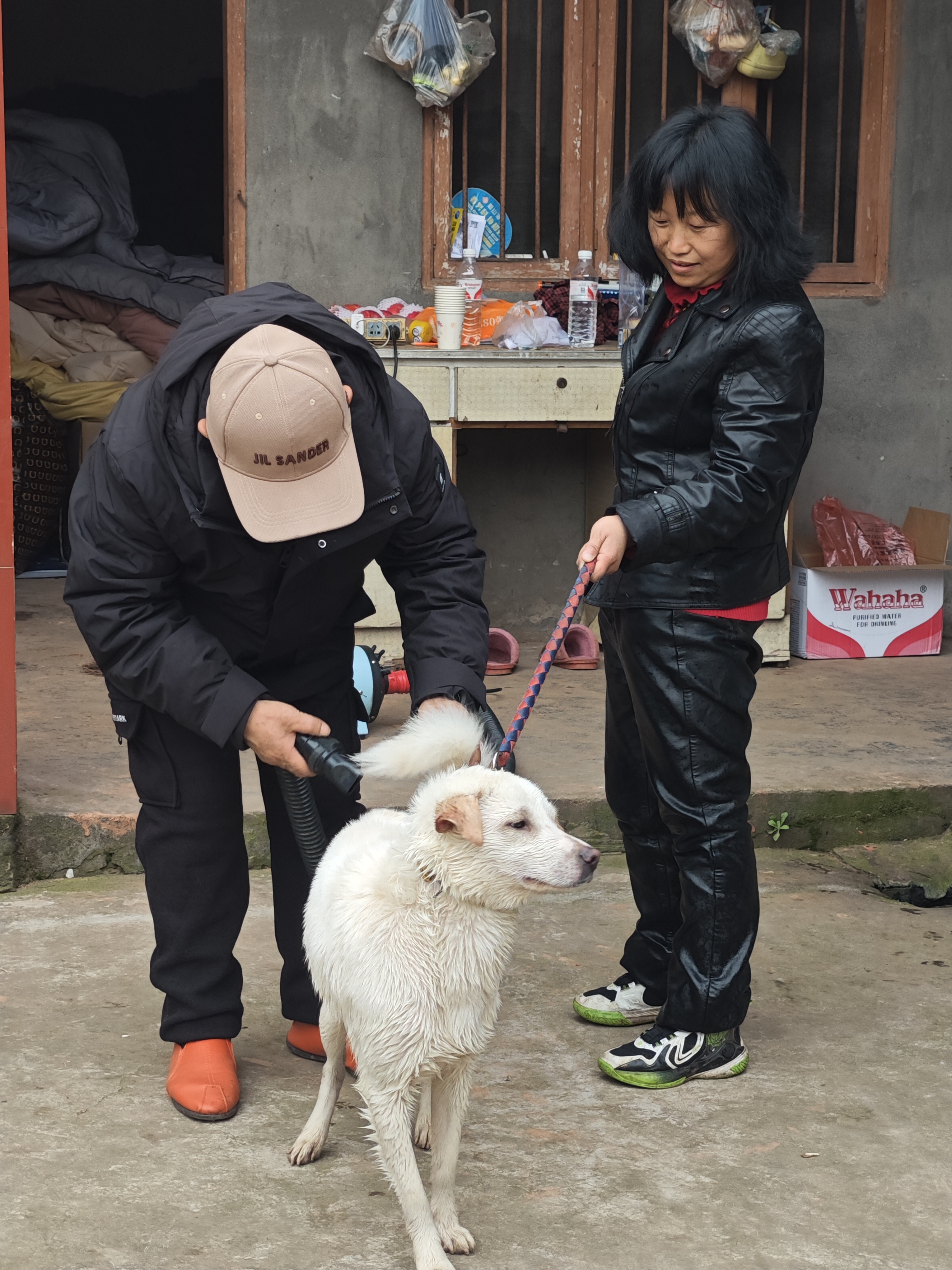 杨海军和爱人贾节花回到大哥家,还带上了陪他流浪的小狗。