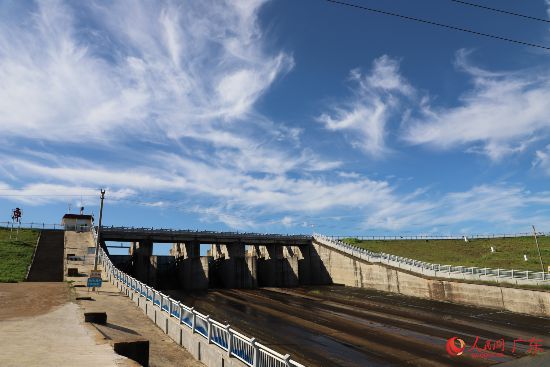 环北部湾广东水资源配置工程向南输水的接点站——大水桥水库溢洪道。 人民网 王雅蝶摄