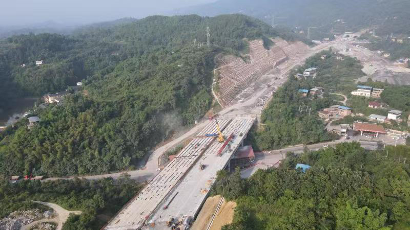 据了解,G319国道跨线桥的顺利架设,打通了铜安项目一分部拌和站(钢筋厂)至巴岳山隧道的施工通道,对项目下一步控制性工程施工具有重要意义。