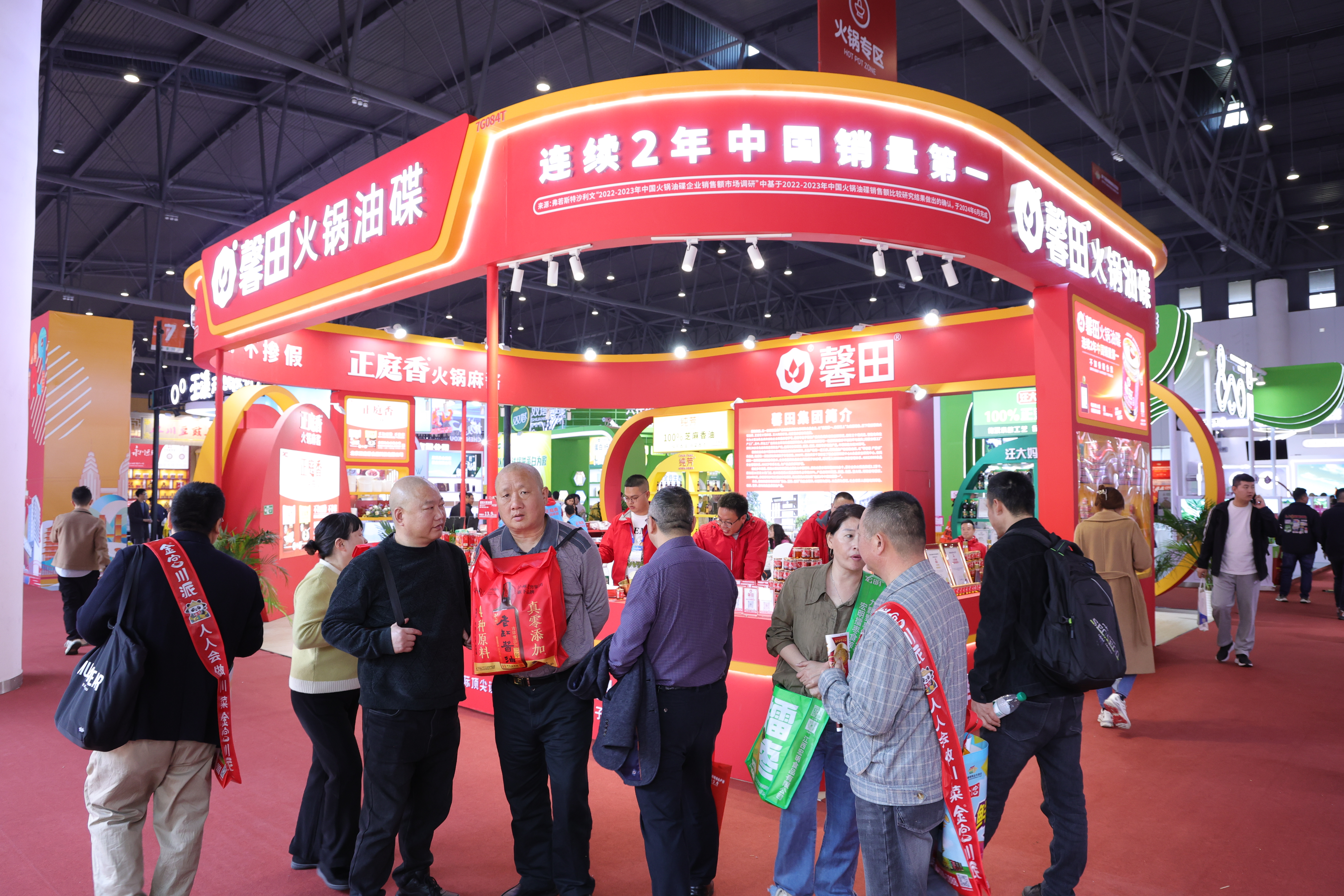 其中,馨田集团携旗下馨田火锅油碟、正庭香火锅麻酱、汪大妈菜籽油、纯芳芝麻香油四大品牌首次亮相糖酒会。走进馨田集团展位,浓郁的芝麻油香气和火锅的热辣辛香扑面而来。油碟、麻酱、菜籽油等各类品牌产品整齐排列,引得往来客商们纷纷驻足品尝,现场一片热火朝天的景象。