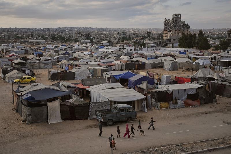 △当地时间10月18日,加沙地带汗尤尼斯,一个流离失所的巴勒斯坦人帐篷营地。