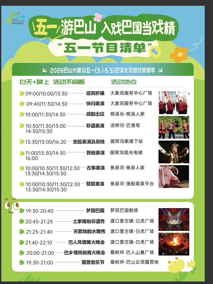 巴山大峡谷景区五一节目清单。