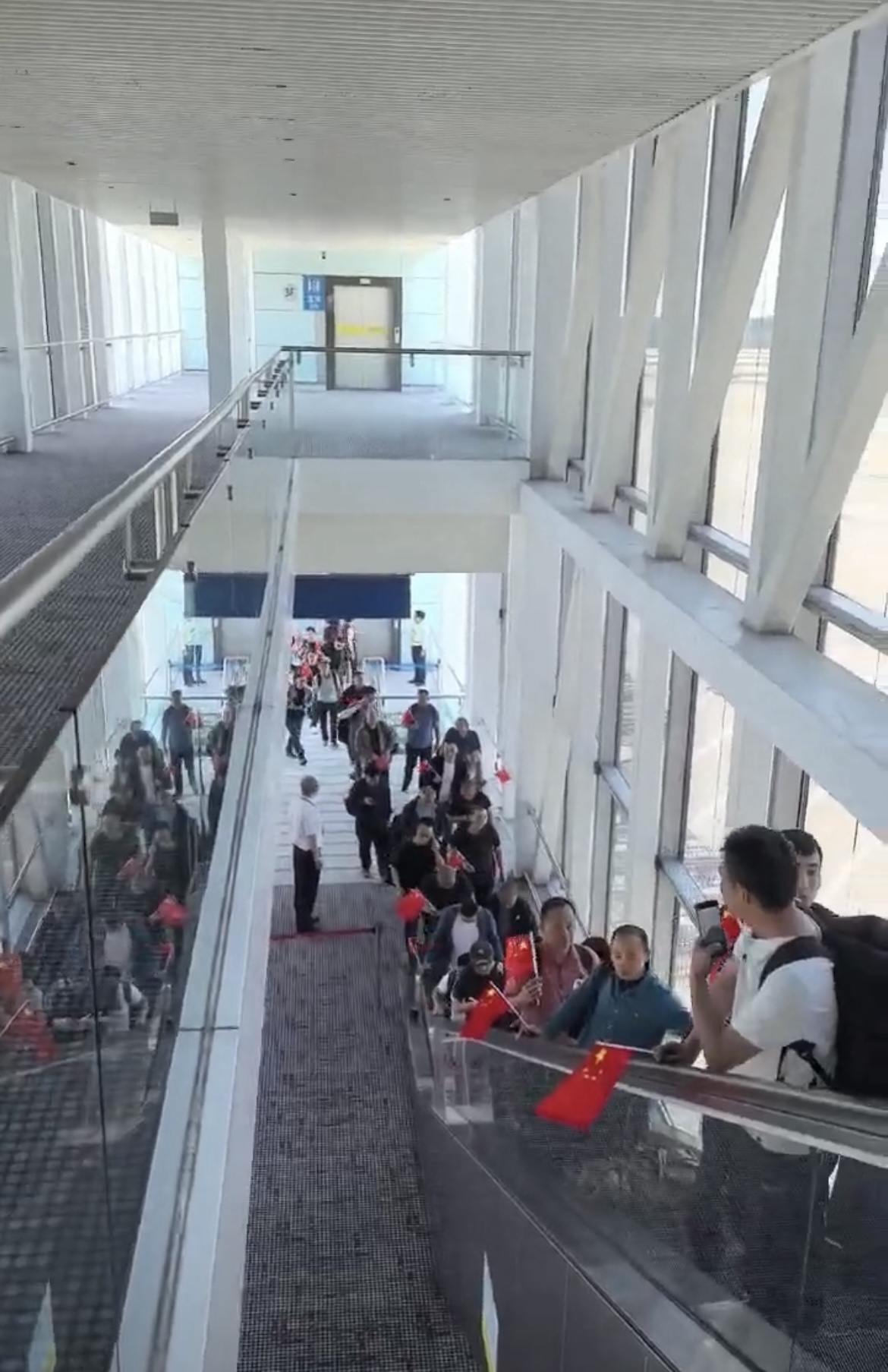 汪先生拍摄的撤侨一行120人回到北京国际机场