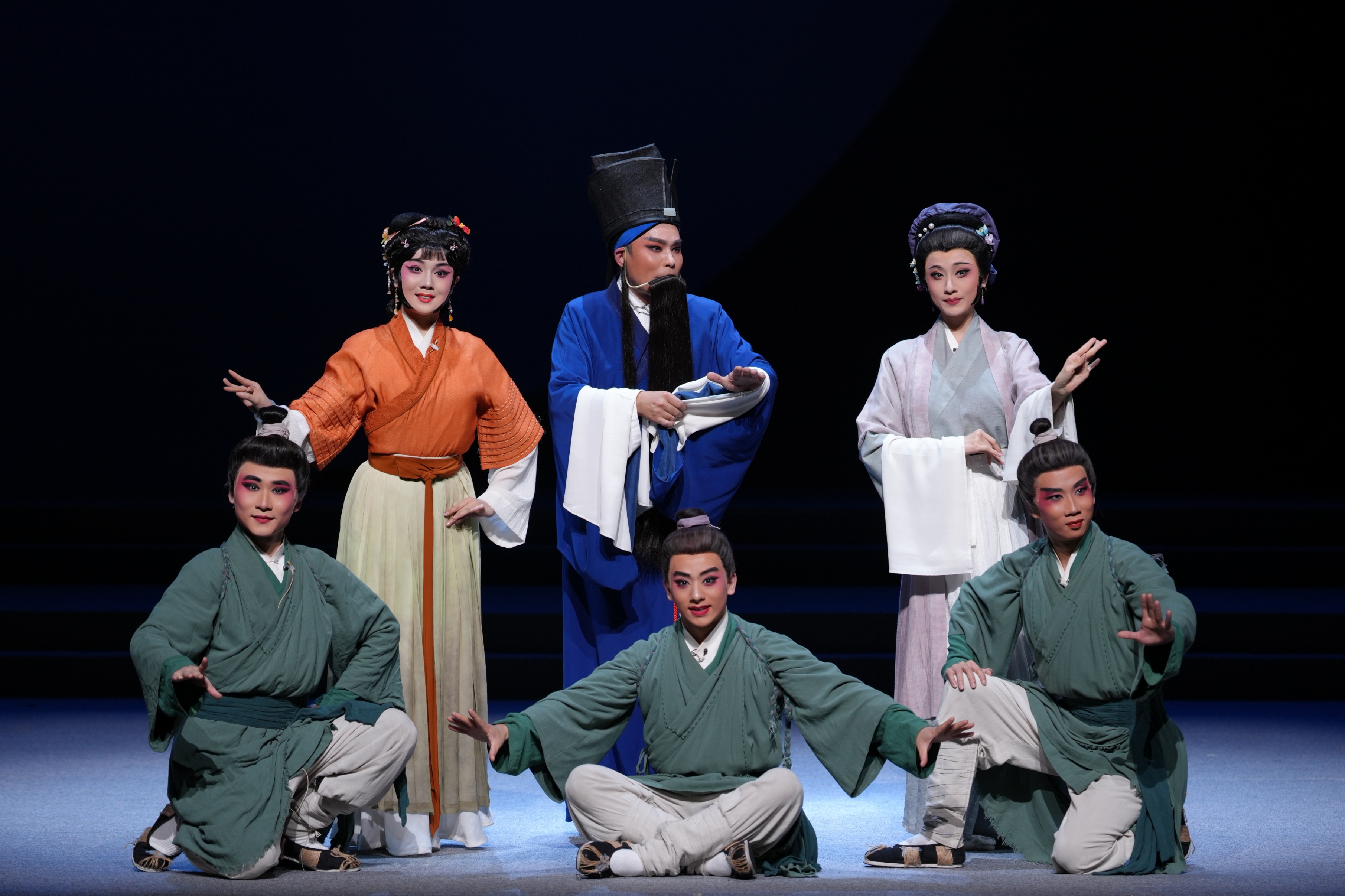 主工小生、武生的00后演员梁浩龙,此次在《梦回东坡》中一人分饰三角——苏迈、衙役与周瑜,其中“娃娃生”苏迈的塑造对他而言是十足的挑战。“我之前没接触过娃娃生,对这个行当的程式功法没什么概念。”为了演好这个角色,梁浩龙主动查阅资料,反复观看《宝莲灯》等经典娃娃生剧目,从前辈们的演出视频中汲取灵感,再结合导演的指导不断琢磨。