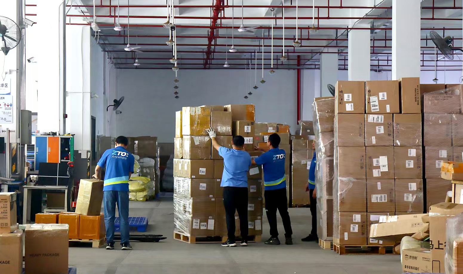 在中通国际柬埔寨的一个海外仓,业务员们正在装卸货物。受访者供图