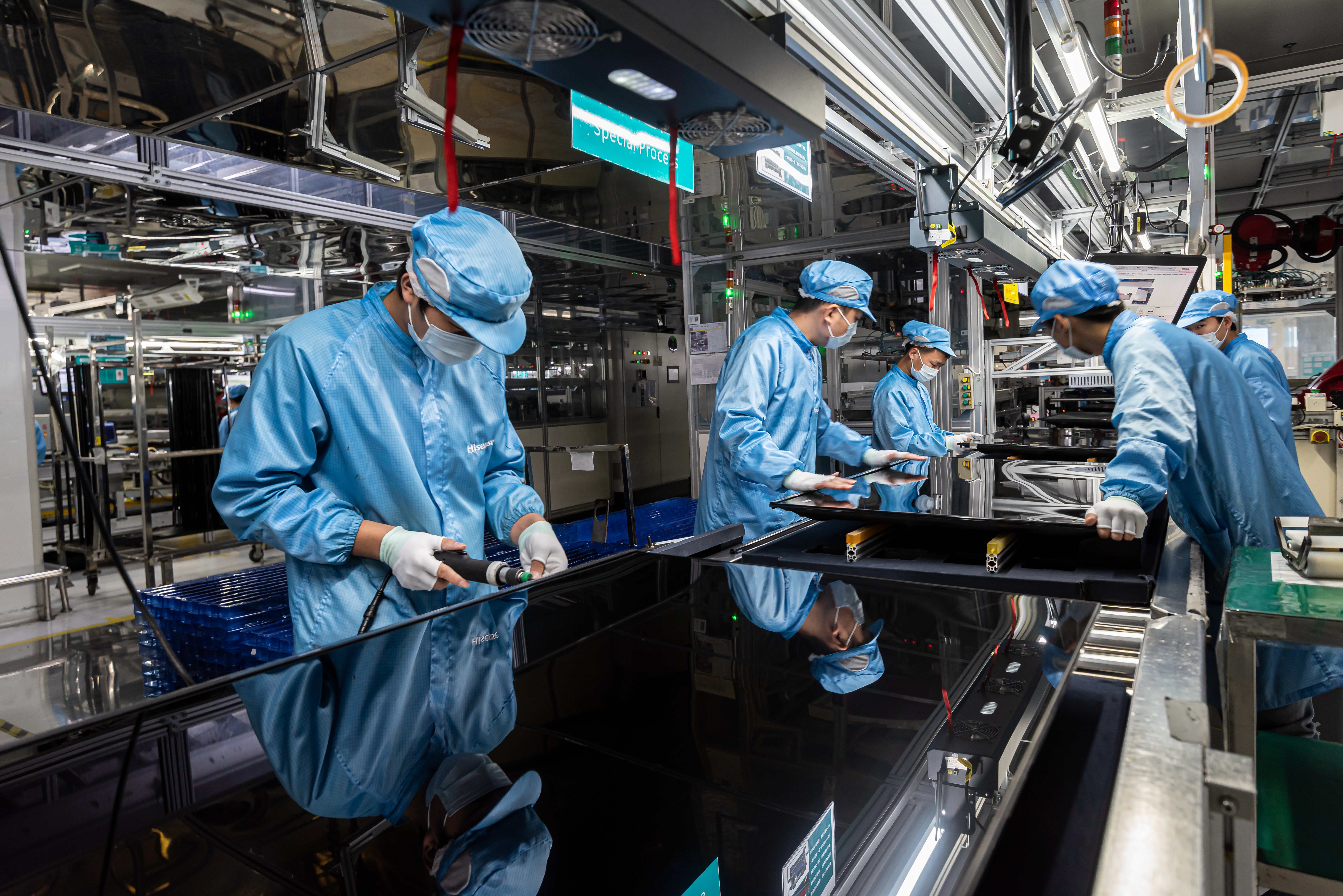 在海信工厂,技术工人正在生产电视。受访者供图