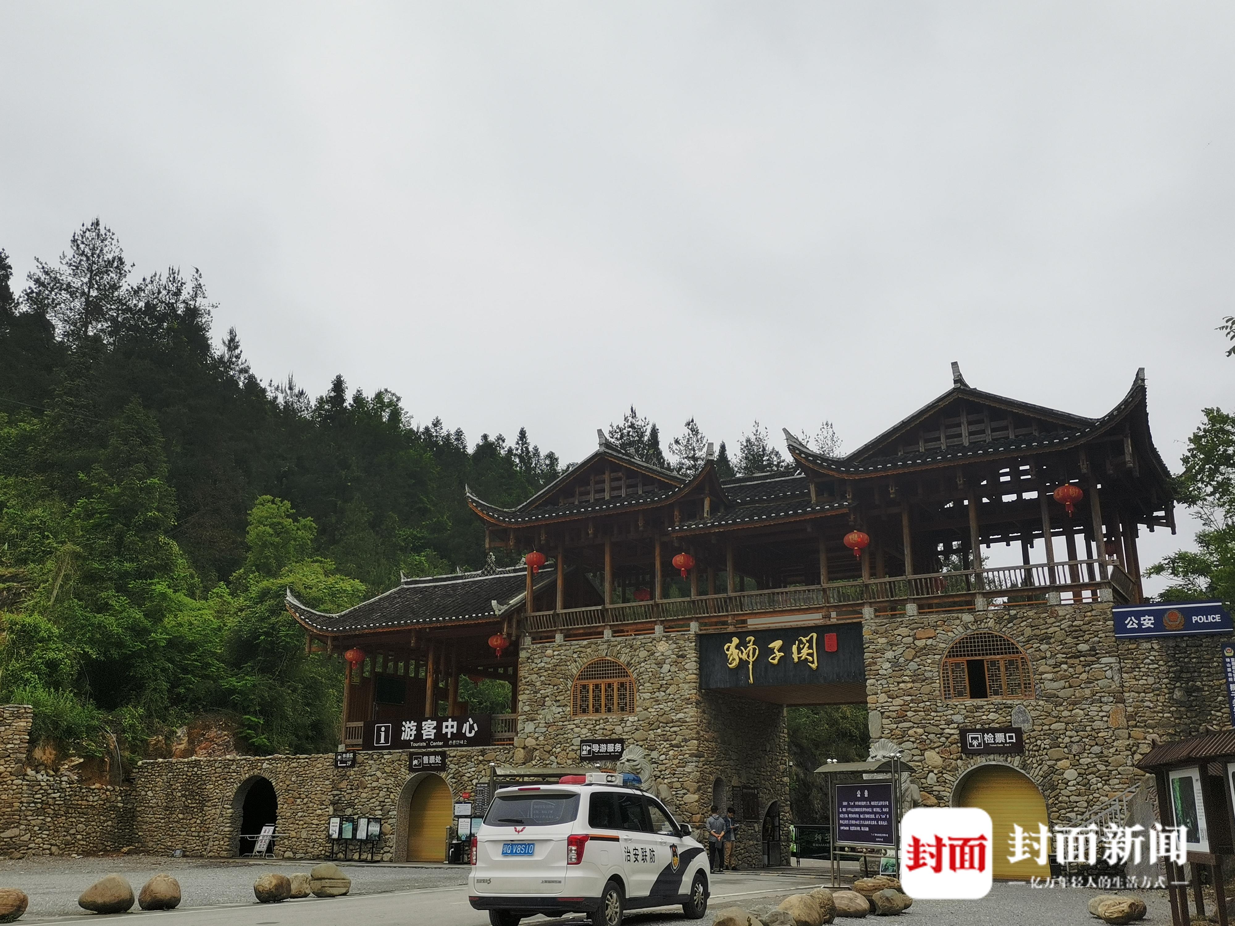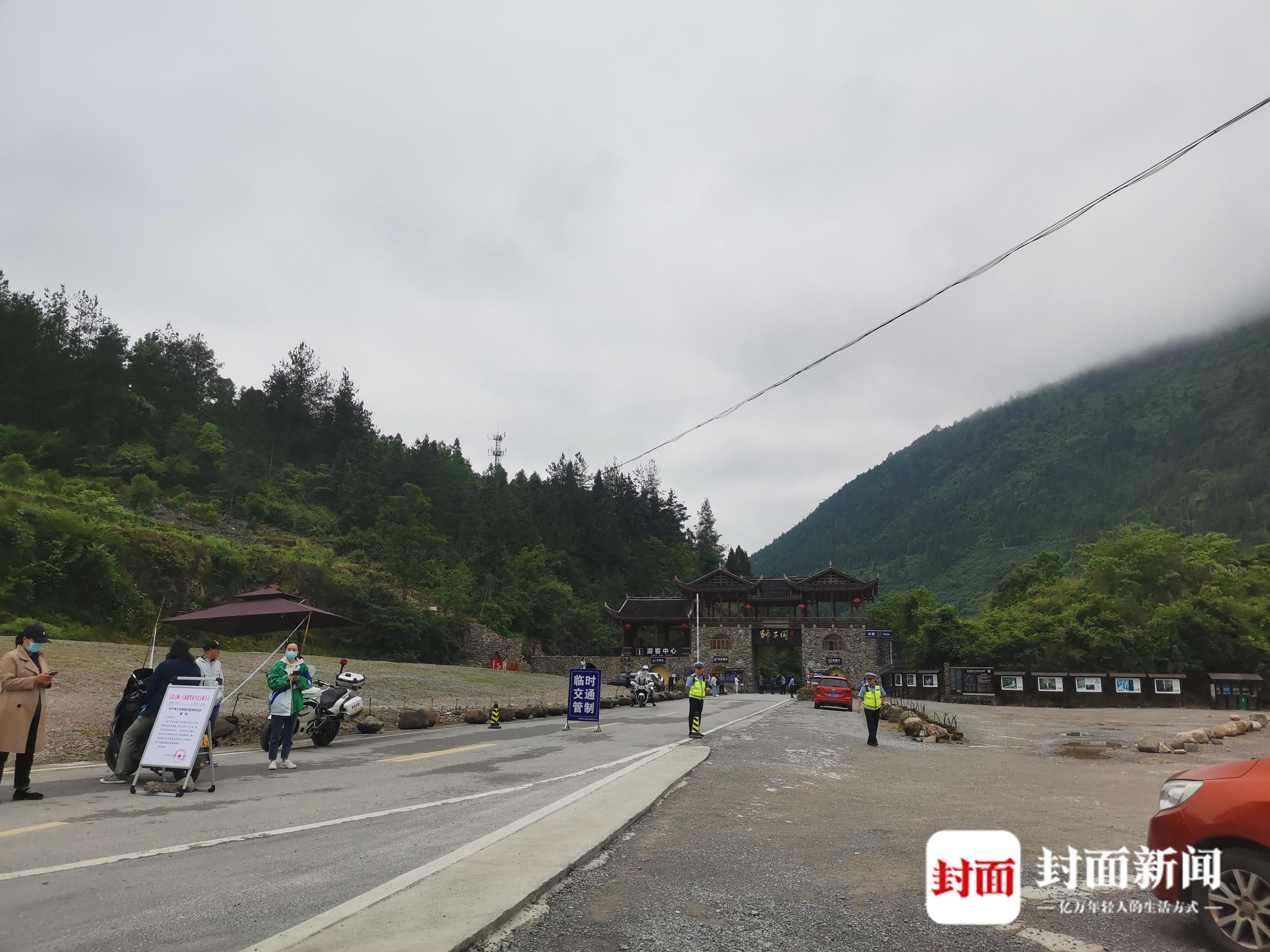 17日清晨的狮子关景区大门外