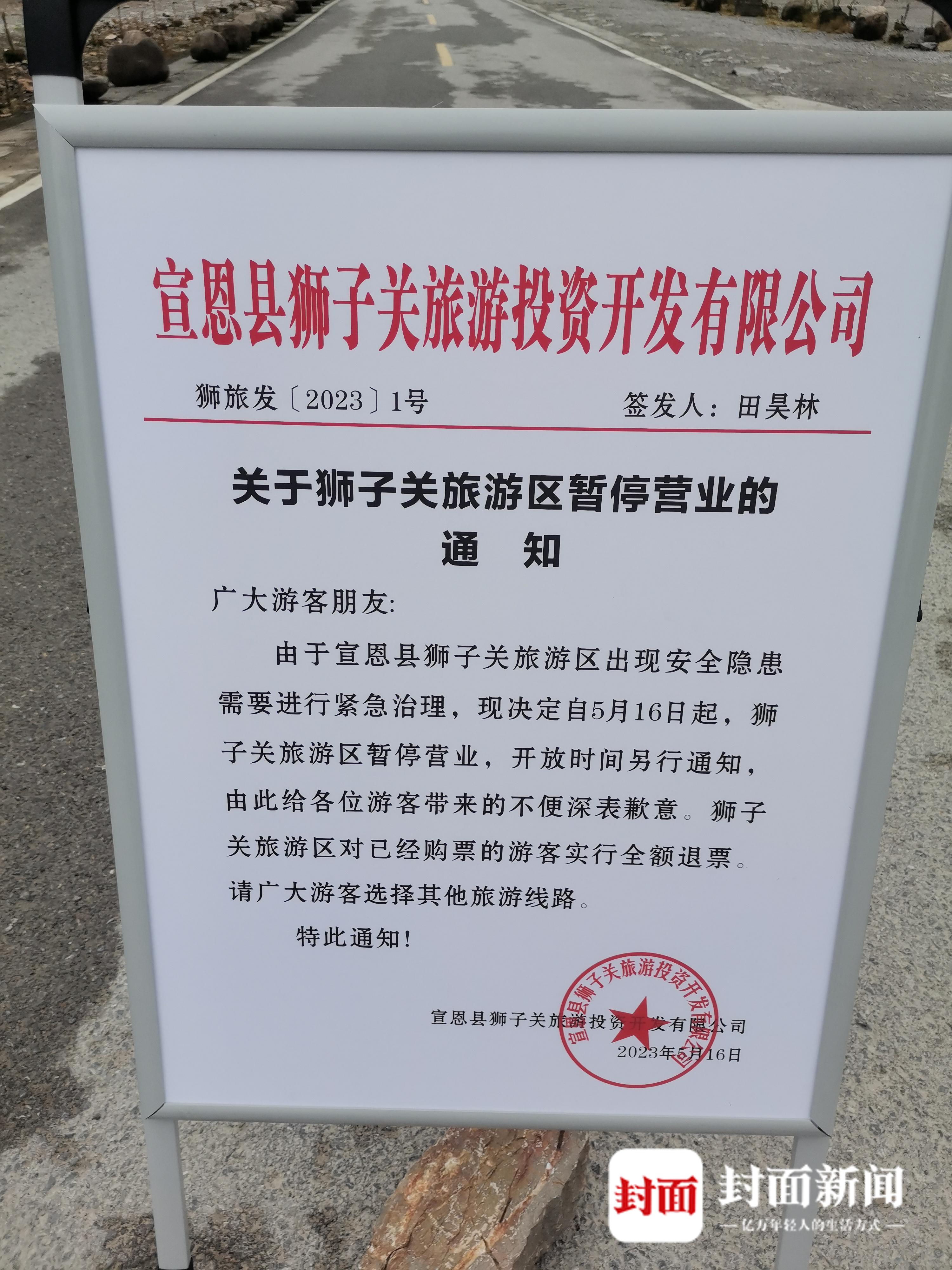 封面新闻记者询问景区什么时候对外开放?景区工作人员劝告:“你只有先到其他景区看看,这里暂停营业,这两天肯定是不行的,还在调查,要等调查结果出来后才知道。”