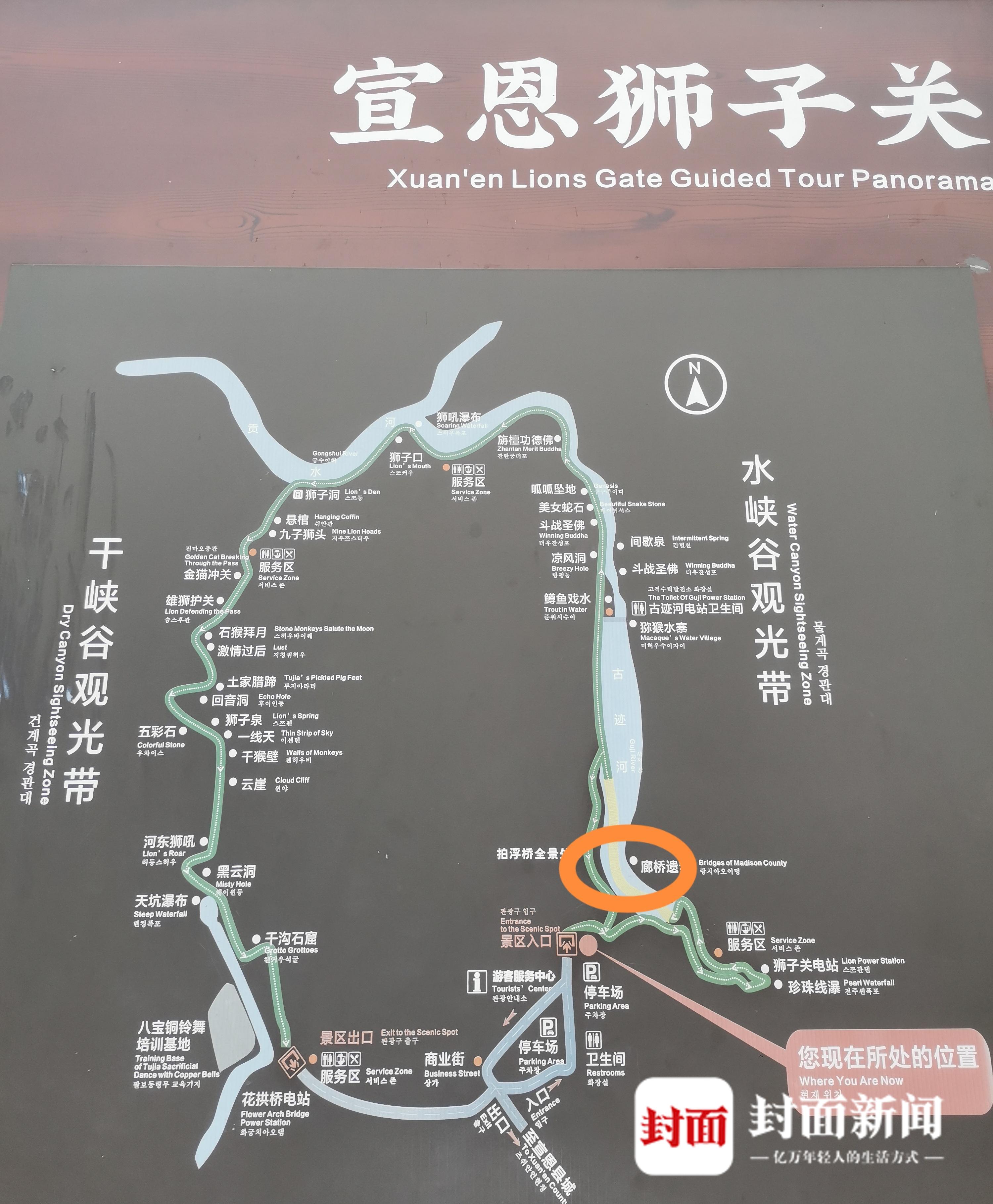 橙色圆圈大约为游览车出事地点