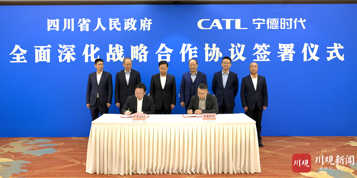 1月31日,四川省人民政府与宁德时代新能源科技公司在成都签署全面深化战略合作协议。省委书记、省人大常委会主任王晓晖,省委副书记、省长黄强会见宁德时代新能源科技公司董事长曾毓群一行,并共同见证协议签署。