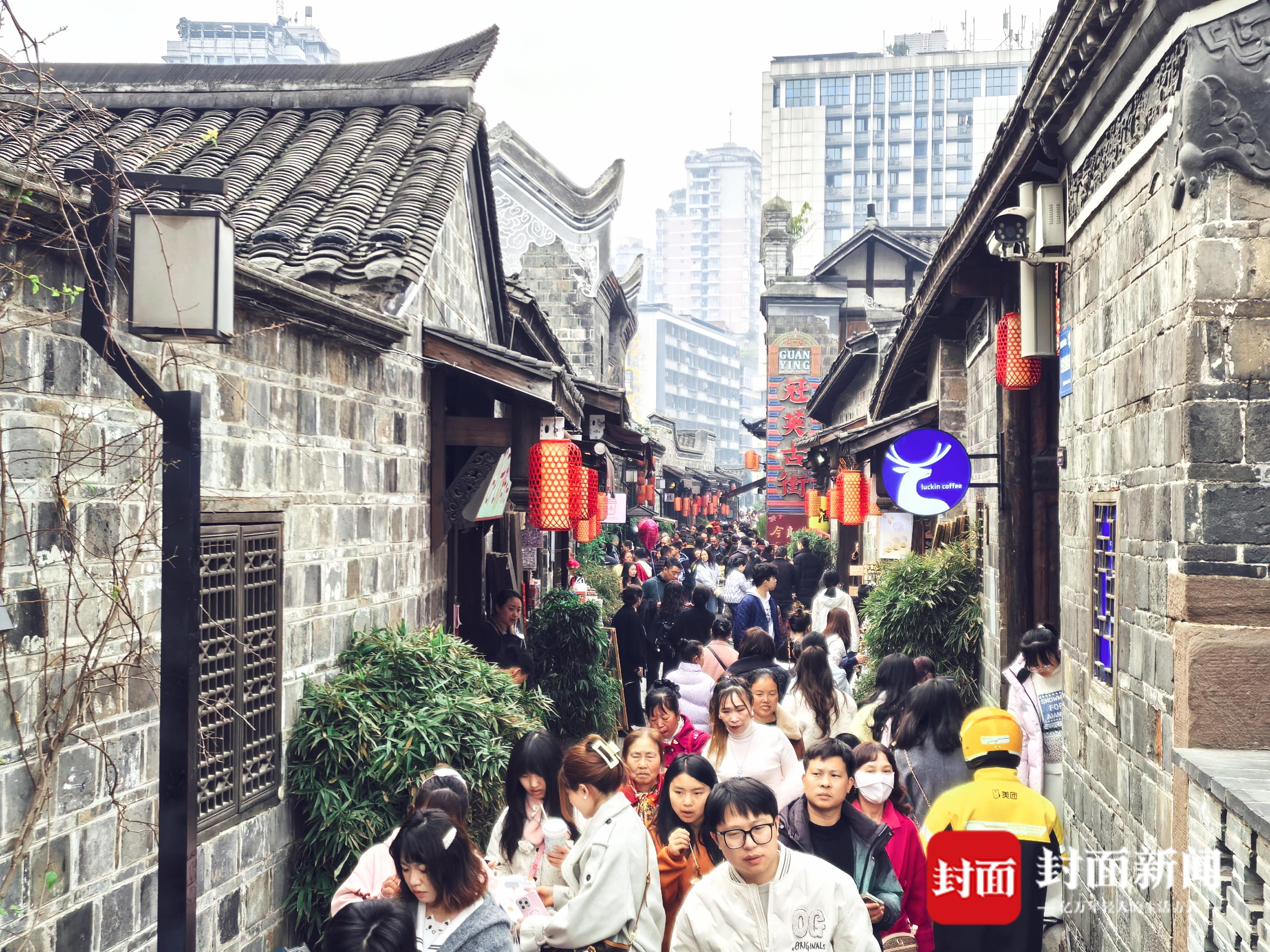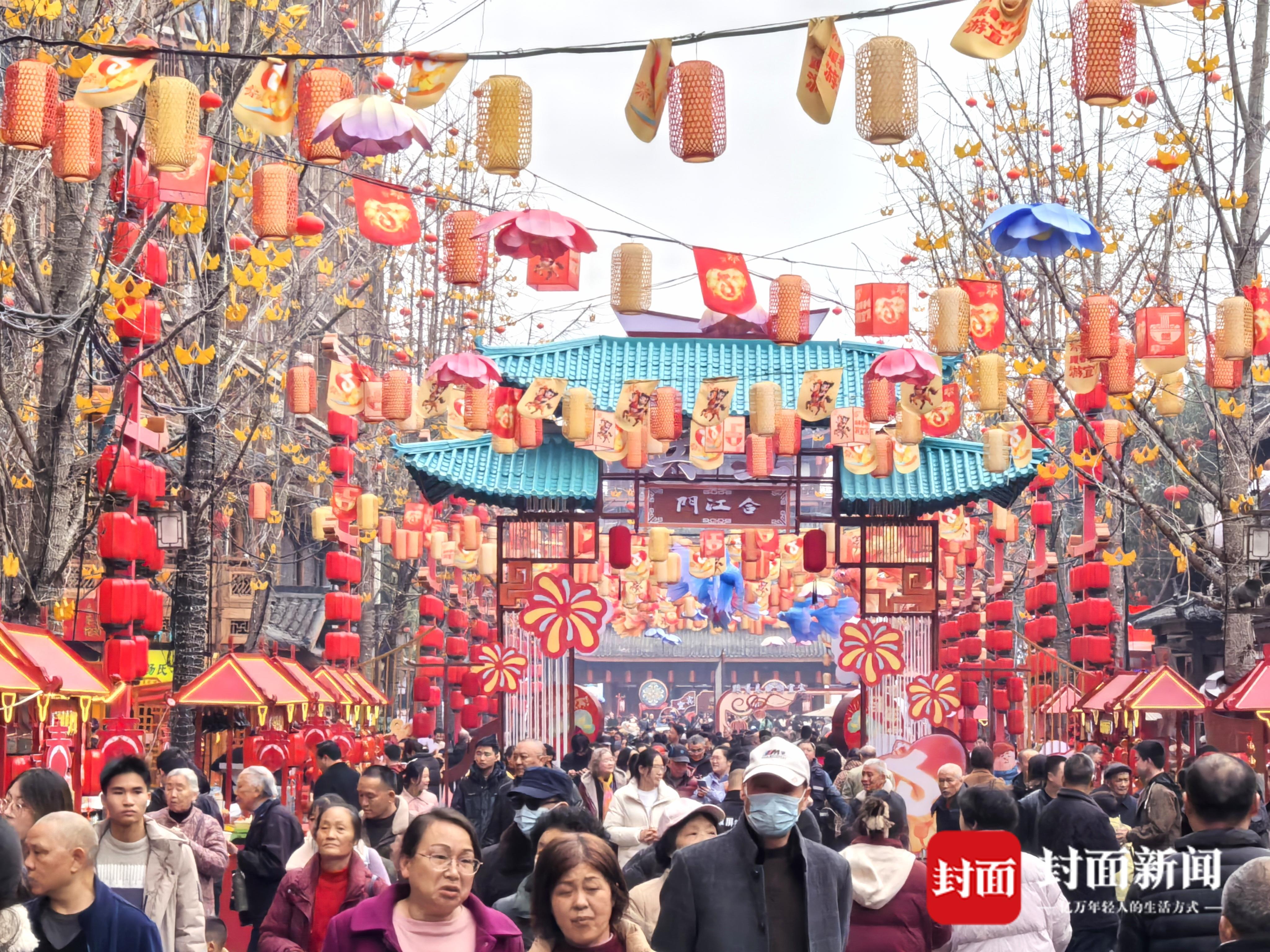 2月17日,大年初一。上午11时,封面新闻记者在总台春晚宜宾分会场拍摄地看到,红灯笼点缀着冠英古街、合江门广场、501白酒文化圣地等地,年味十足。随着众多游客纷至沓来,景点变得热闹非凡。在跟着春晚游宜宾打卡点,游客们纷纷用镜头与春晚“同框”,留下这珍贵的时刻。