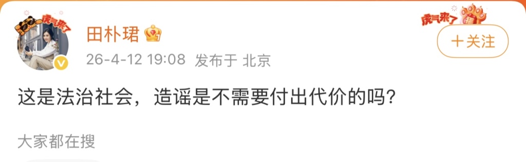 消息发布后,王石及其身边人士接连作出回应。王石夫人田朴珺在其个人微博发文:“这是法治社会,造谣是不需要付出代价的吗?”