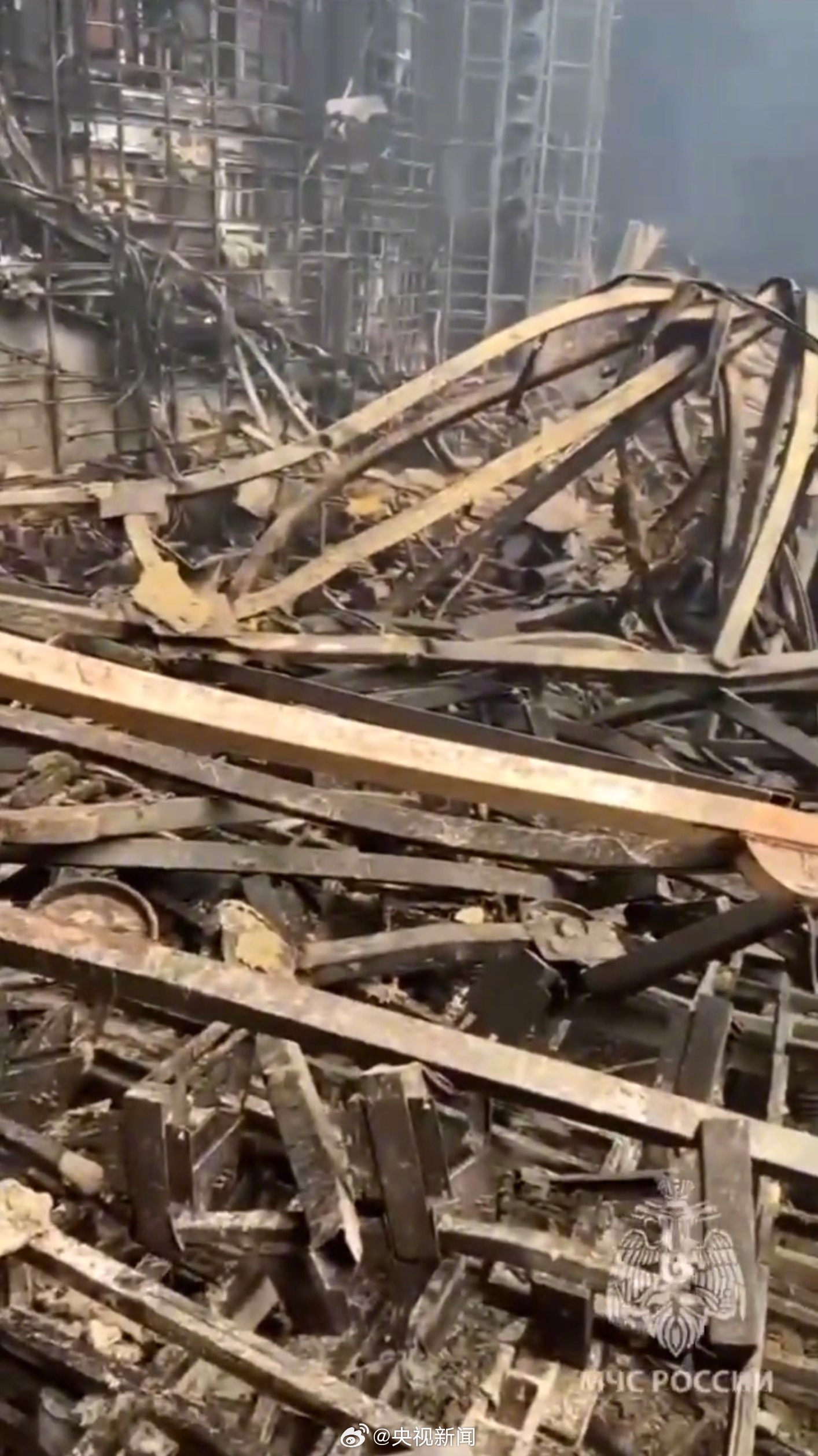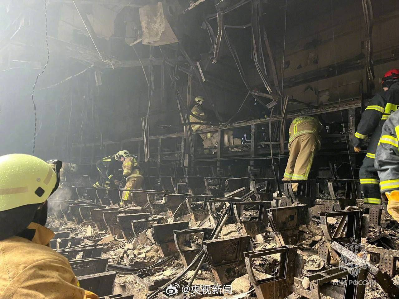 当地时间3月22日晚,俄罗斯莫斯科州一音乐厅发生恐怖袭击,袭击导致大楼顶部几乎完全被火焰吞噬,部分楼顶发生坍塌。俄罗斯紧急情况部发布的音乐厅内部画面显示,音乐厅已被烧得面目全非。