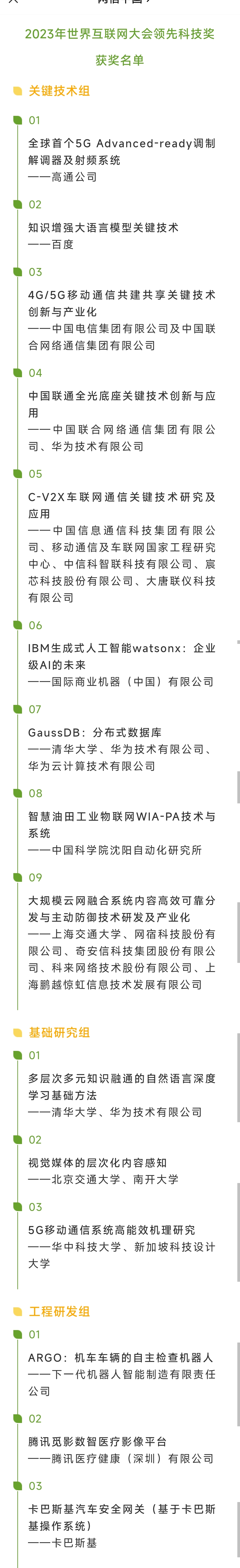 “一批又一批领先科技成果脱颖而出,在鼓励科技创新、倡导技术交流合作方面发挥了重要作用。”邬贺铨表示,期望通过“世界互联网大会领先科技奖”鼓励全球更多科技人才和企业积极投身基础理论研究、工程研发和关键技术应用等领域不懈探索,为互联网前沿技术发展、领先成果转化及产业应用贡献智慧和力量。