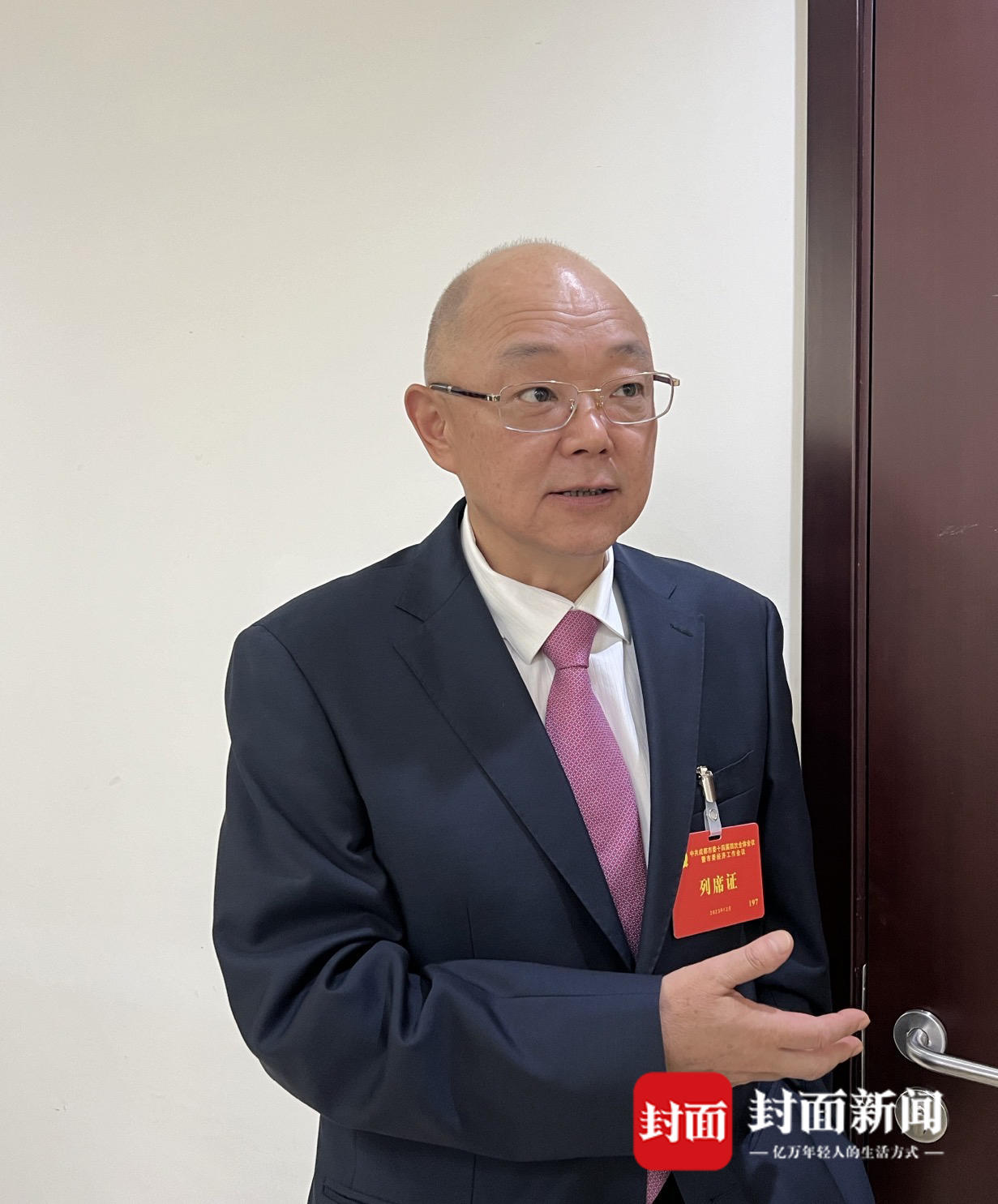 12月27日,成都市委十四届四次全会暨经济工作会议举行。在分组会议讨论环节,创意信息技术股份有限公司董事长陆文斌接受封面新闻记者采访。
