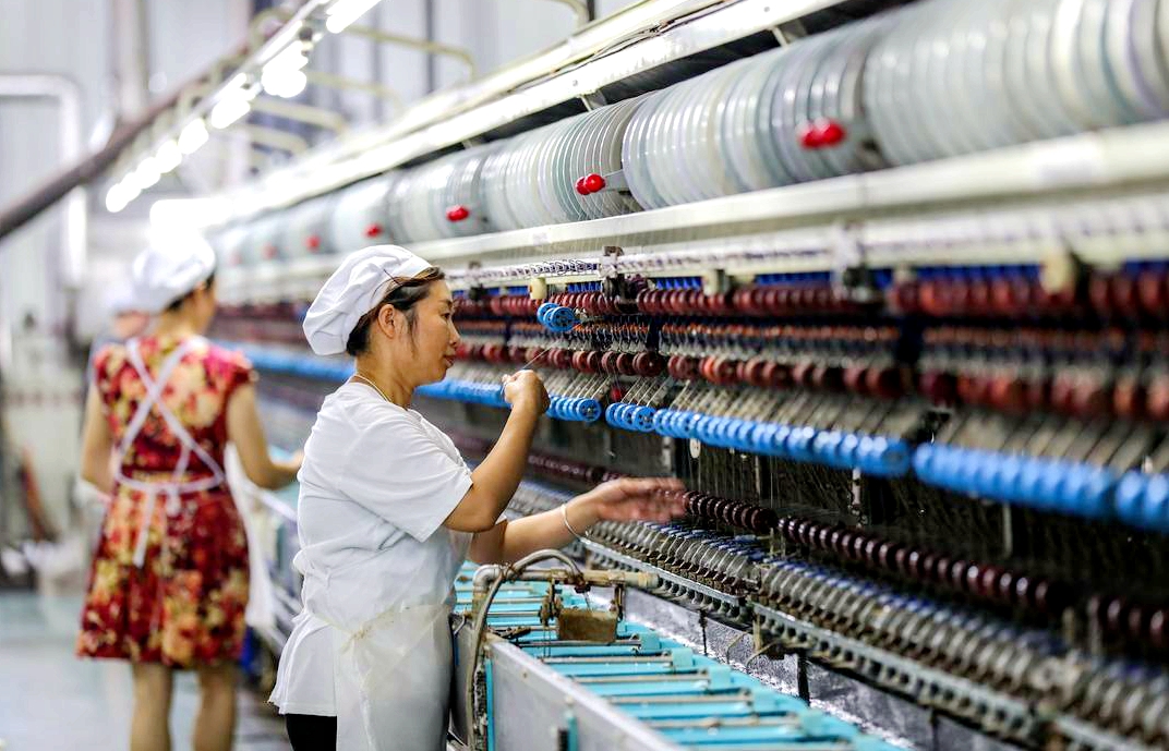 位于高县的四川新丝路茧丝绸公司车间,工人在生产线上缫丝。