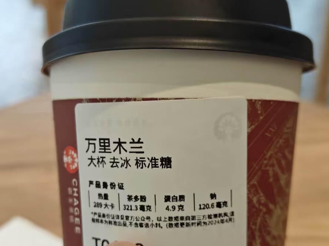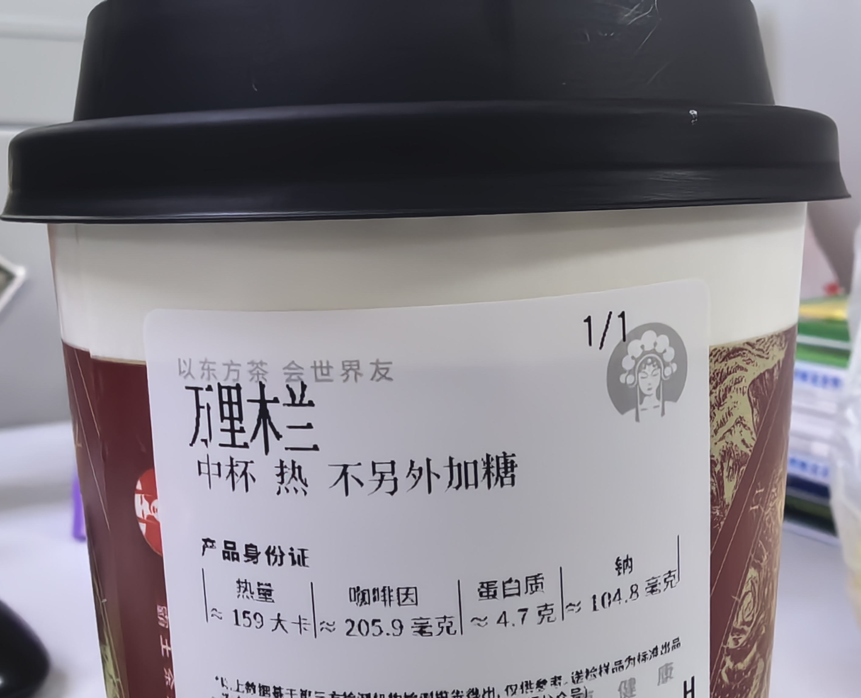 2025年12月29日霸王茶姬“万里木兰”杯身上的成分显示