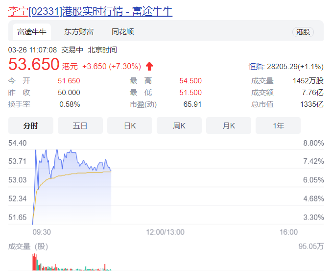 3月26日,A股纺织服装板块继续走强,涨幅居前。截至上午10:50,美邦服饰、搜于特、日播时尚等8股涨停,报喜鸟、森马、海澜之家、红蜻蜓涨超4%。港股方面,国产体育品牌股价继续被推高,李宁涨超7%,安踏涨超4%。