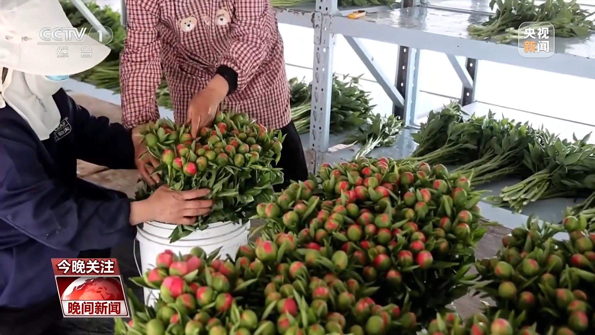 春风送暖,“鲜花”经济正绘就乡村振兴新画卷。眼下,山东省菏泽市定陶区杜堂镇的大棚芍药迎来集中采切期,新鲜采切的芍药花经过分拣、杀菌、冷藏、包装等环节后,当天便通过冷链物流发往全国各地,次日就能到达消费者的手中。