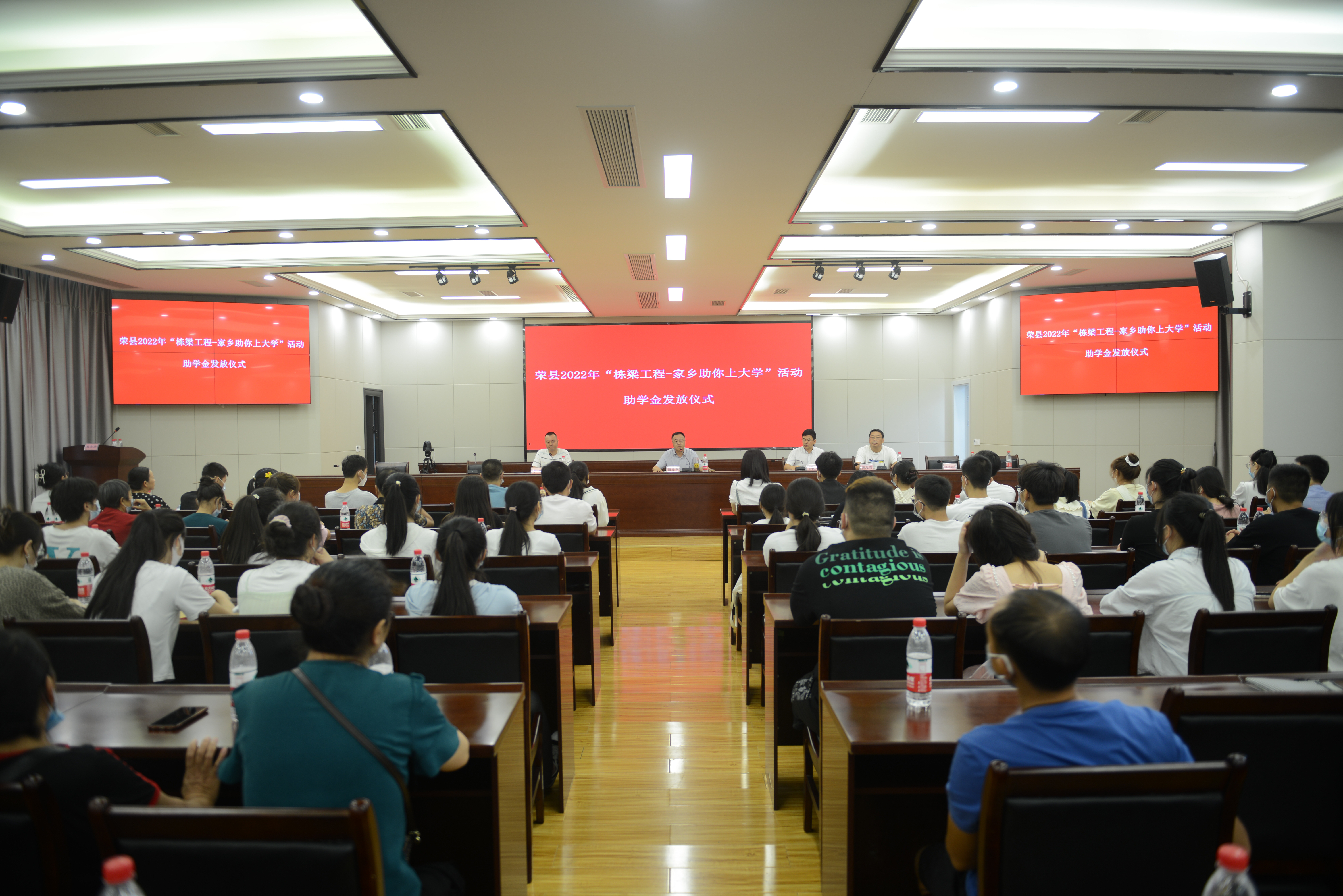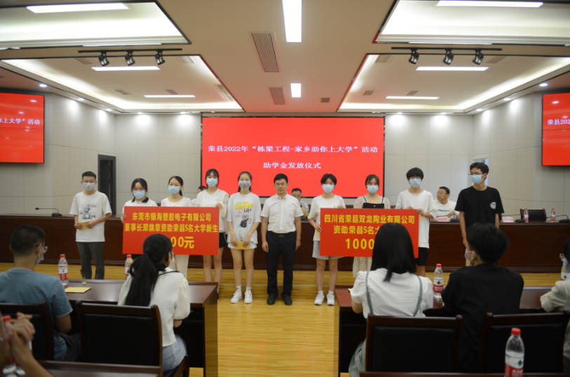 8月下旬,自贡市荣县举行2022年“栋梁工程-家乡助你上大学”活动助学金发放仪式,向32名大学新生发放6.4万元助学金。县委常委、统战部部长胡爱华及县工商联、爱心人士代表、受助学生等参加。