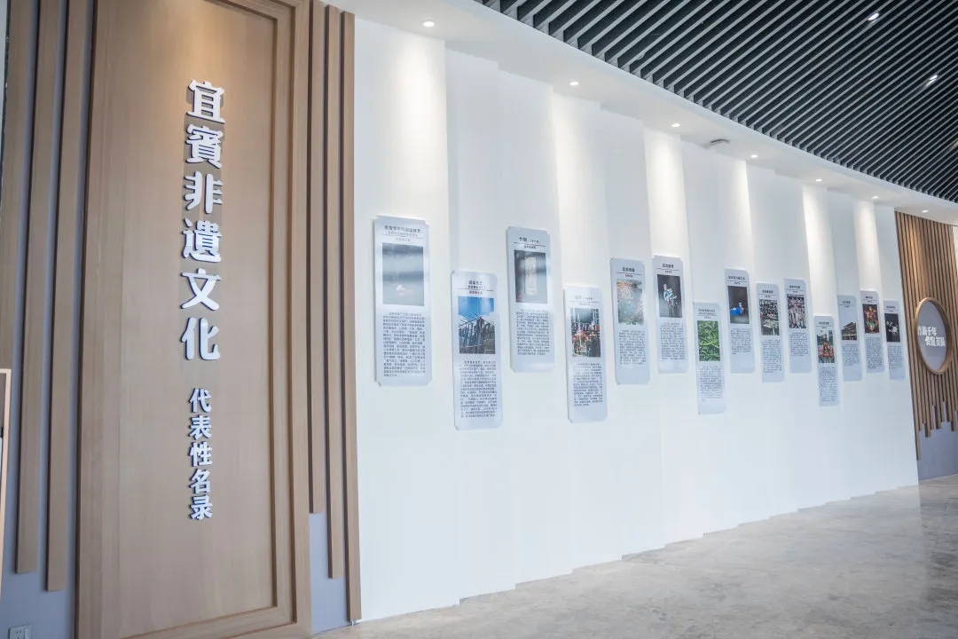 中华非遗·宜宾体验中心是依照竹叶的外形进行设计,内部划分为宜宾非遗文化代表性名录展示区、非遗自选商城、鹿鸣茶体验区、非遗酒类展示区、手作体验区、休息区等6大区域。