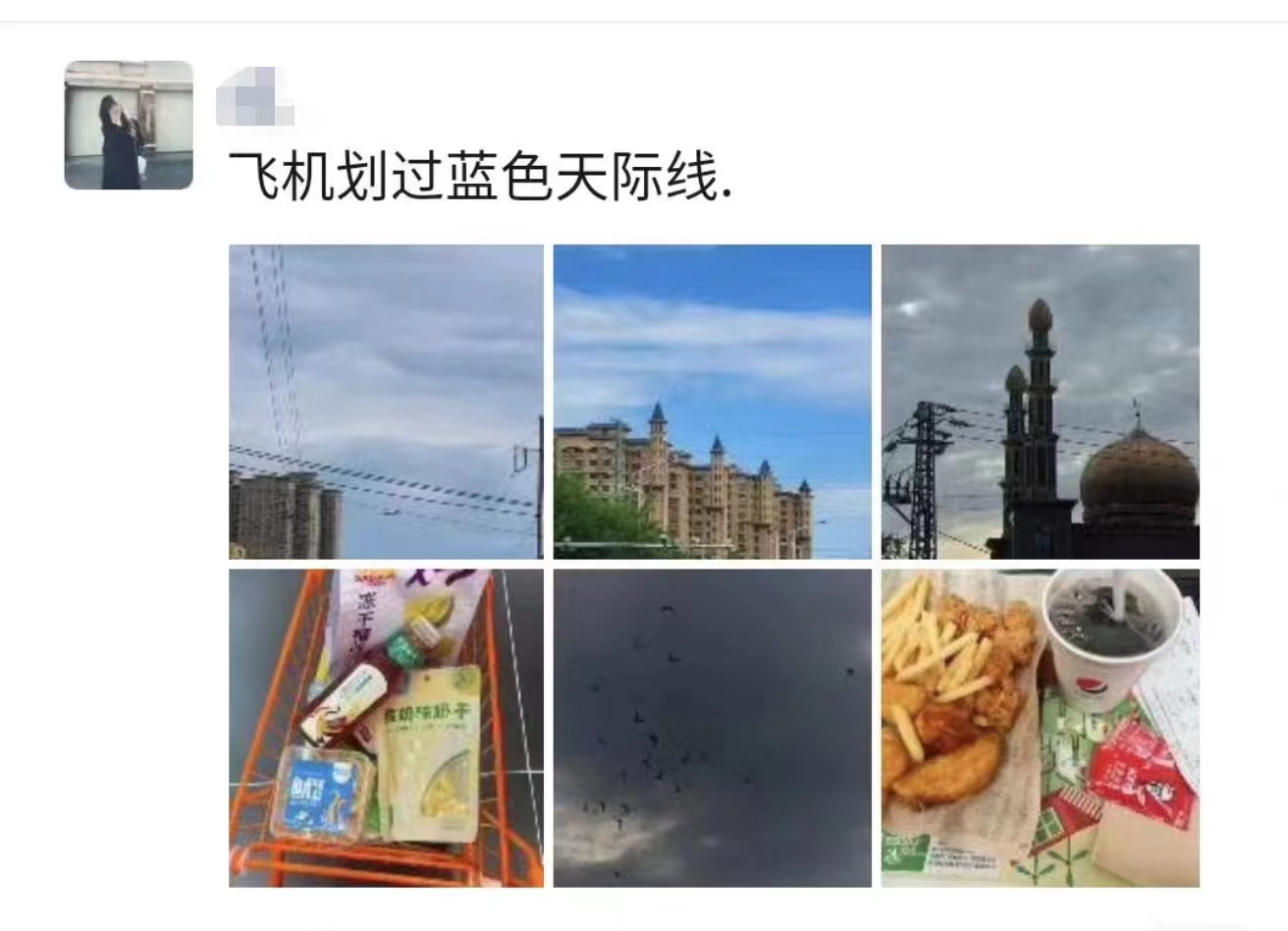 7月6日下午,平平坐上了成都直飞乌鲁木齐的航班。“飞机划过蓝色天际线”当天晚上,张鸿博看到平平发出的这条朋友圈,家人团聚的温馨画面瞬间浮现在脑海,欣慰的笑容洋溢在脸上。