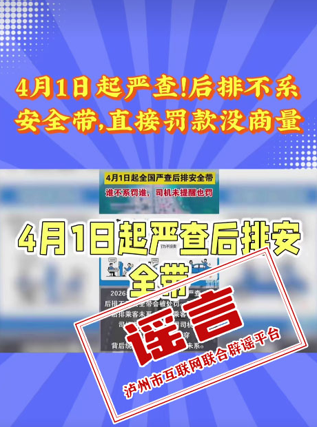近日,一则“4月1日起严查!后排不系安全带,直接罚款没商量。”消息引发网友关注。泸州本地社交群也有网民讨论此事,有网民称这是新规。
