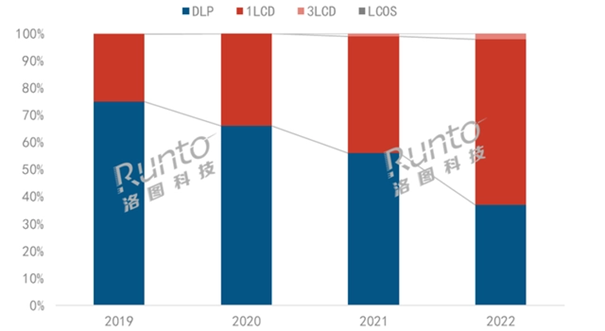 与手机、电脑等产业一样,投影市场中的国货同样经历了十分漫长的“黑暗时代”。回看智能投影在中国的发展历程,以海外芯片为核心的DLP技术投影仪占据着大部分的市场份额。但面对海外芯片的技术围剿,最先出现转机的却也是国内智能投影市场。