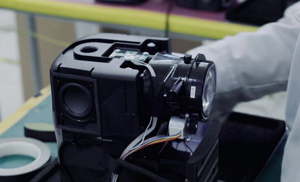 在以往,普通的单LCD投影的镜头,都是三片式的镜头,根本无法做到偏轴设计。微果在与京东方合作之后,采用了新的四片全玻璃镜头,并且重新进行了光路系统的设计,最终实现了50%的偏轴设计,这也是目前为止LCD投影中唯一的光学无损偏轴设计。