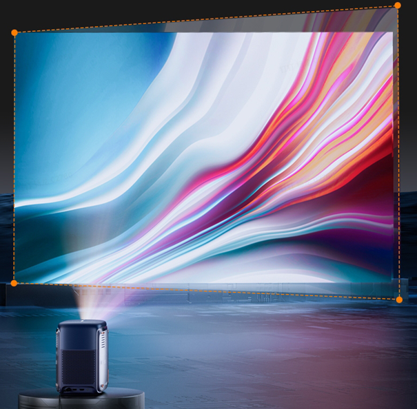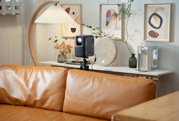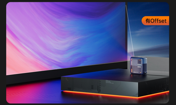 传统LCD投影仪的配套方案通常是使用支架,使投影仪悬空来制造物理仰角,这样虽然解决了部分问题,但画面变形的问题依然存在。同时,使投影仪悬空,就有可能会伴随掉落的风险,观影时的注意力就会被分散,观影体验并没有得到多大的改善。