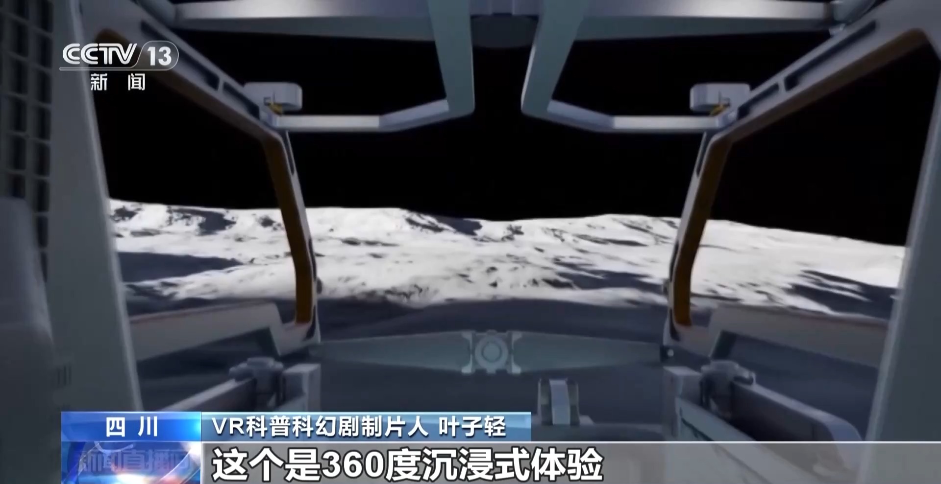 VR科普科幻剧制片人 叶子轻:首次采用了月面的真实数据做一个科普科幻剧,可以360度沉浸式体验。让观众有身临其境的感觉,自己穿上航天服,从发射基地坐上火箭,坐上飞船升空,到空间站进行对接,换乘落月的航天器,落到月球以后去感受整个登月的过程。