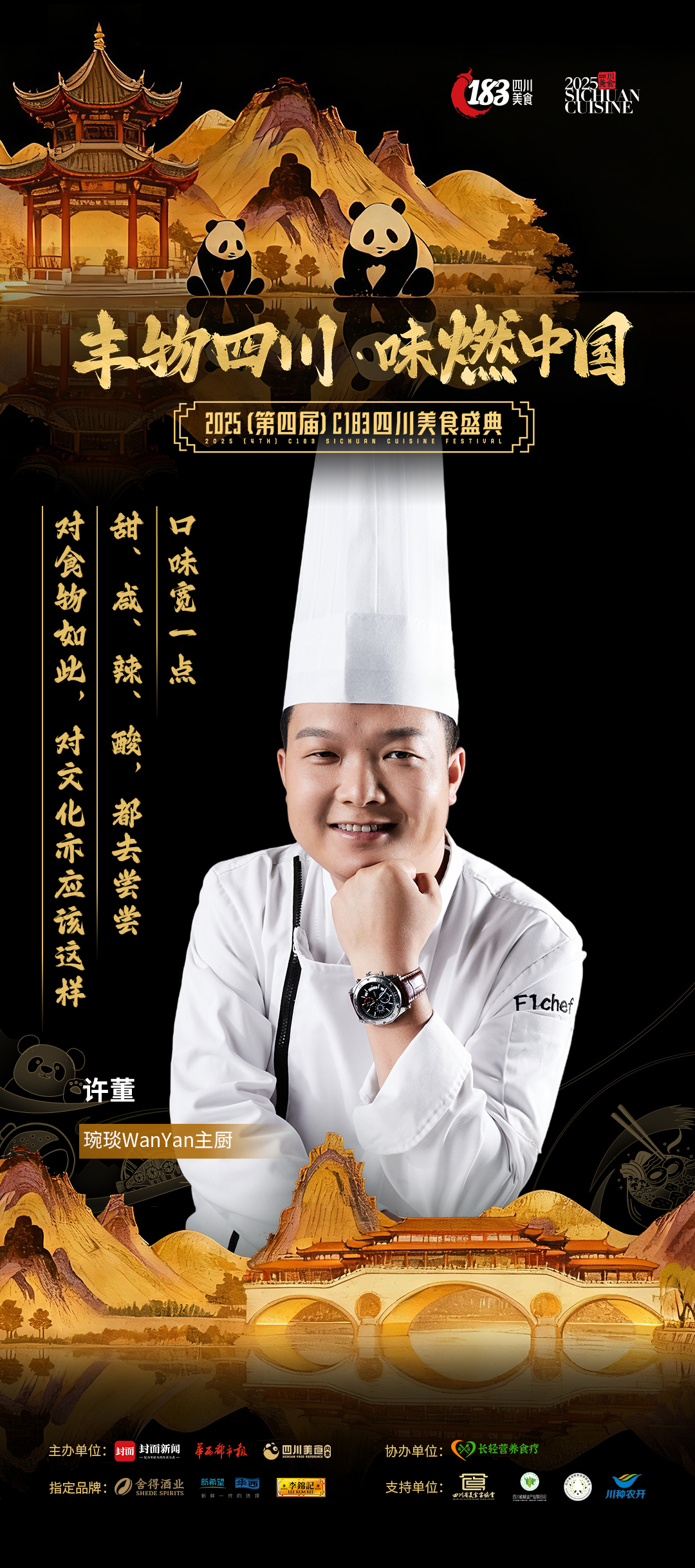 本届盛典在内容设计上也颇具看点:聚焦一个县域,全方位展示其美食文化、农产品资源与乡村振兴成果,打造“一县一品”的立体呈现;联合头部电商平台、MCN机构与县域企业,构建常态化直播助农机制,让“川货”真正走进千家万户;推动“食材溯源计划”,由川菜大师带队,深入食材原产地,挖掘并认证地标川味,提升产品附加值与文化内涵;邀请平台负责人、行业专家、带货达人共话“数字时代的川货出川之路”,分享实战经验与趋势洞察;由米其林、黑珍珠名厨操刀,以四川优质农林产品为原料,创意呈现一席融合传统与创新的“现代川宴”,展现“川味”的无限可能。