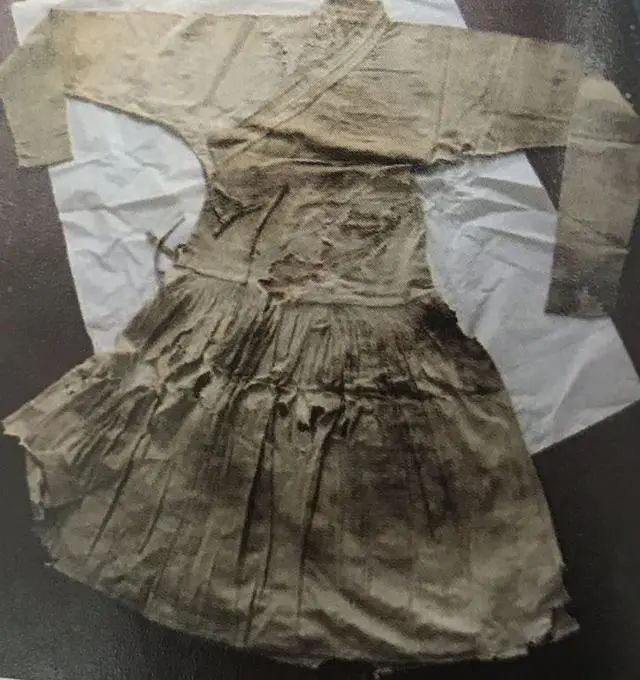 且末县扎滚鲁克墓地出土的西汉时期红色棉布裙衣。