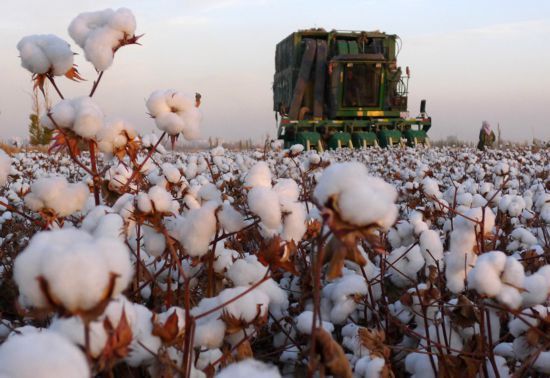 新疆棉花生育期内积温能达到3728℃,热量充足,日照时数为1932小时。吐絮期累计降水量不到0.5毫米,利于棉桃吐絮,纤维质量不会受降雨影响而下降,吐絮期平均昼夜温差普遍在14℃以上。