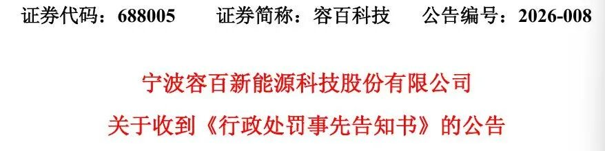 一纸“千亿合同”公告,在短短半个月内迅速演变为一宗“误导性陈述”的铁案。2月6日,科创板上市公司容百科技(688005.SH)公告收到宁波证监局《行政处罚事先告知书》,因披露与宁德时代的重大合同涉嫌违法,公司及相关责任人拟被警告并合计罚款950万元。此案自立案至调查完毕仅15个工作日,监管高效执法,再次严正警示市场:信息披露不容“注水”。