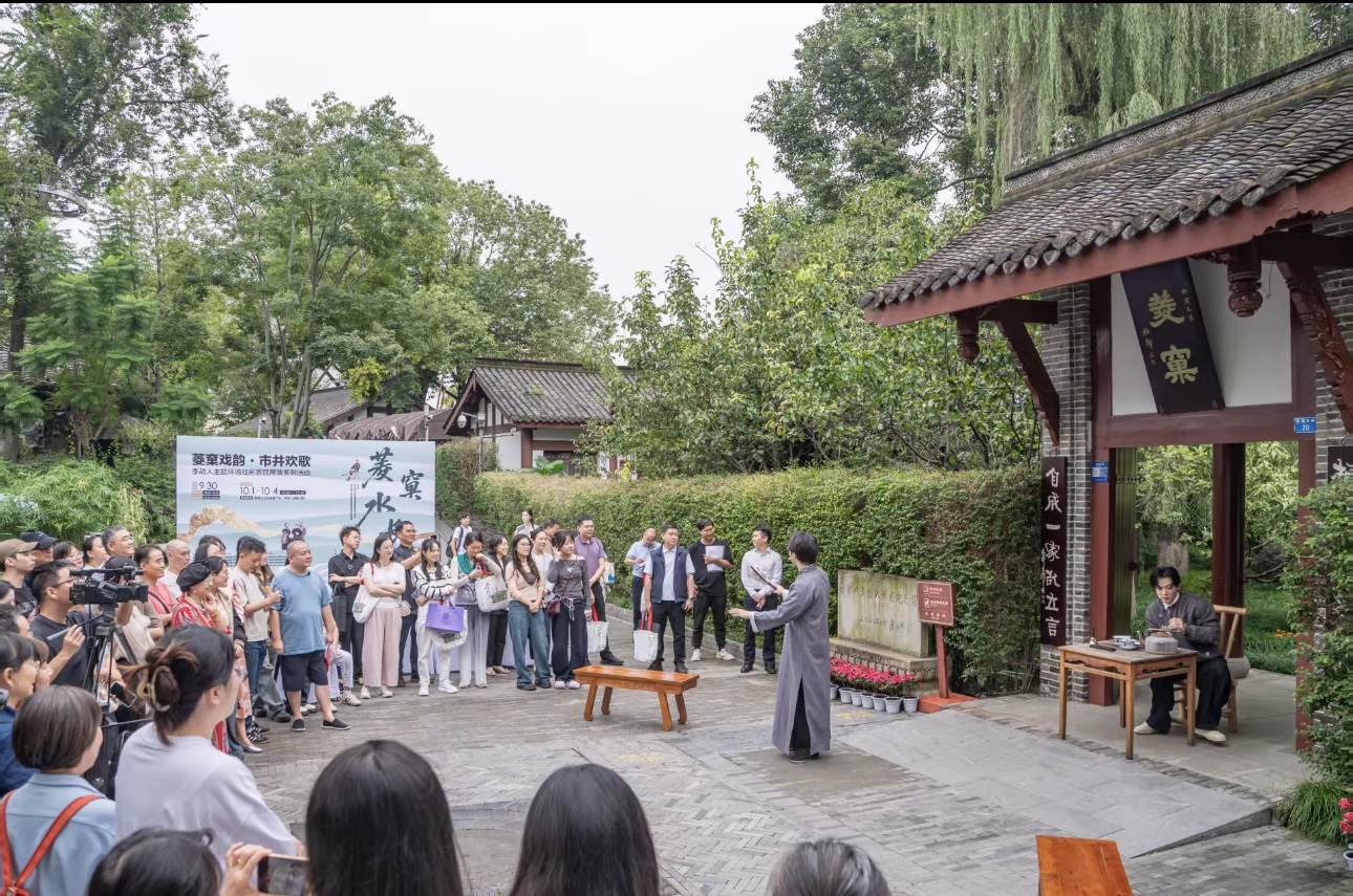 秋光潋滟,菱窠声动。9月30日,“菱窠戏韵·市井欢歌”李劼人主题环境戏剧惠民展演在李劼人故居“菱窠”启幕。由四川师范大学影视与传媒学院戏剧专业学生排演的环境戏剧《菱窠水长流》现场演出。