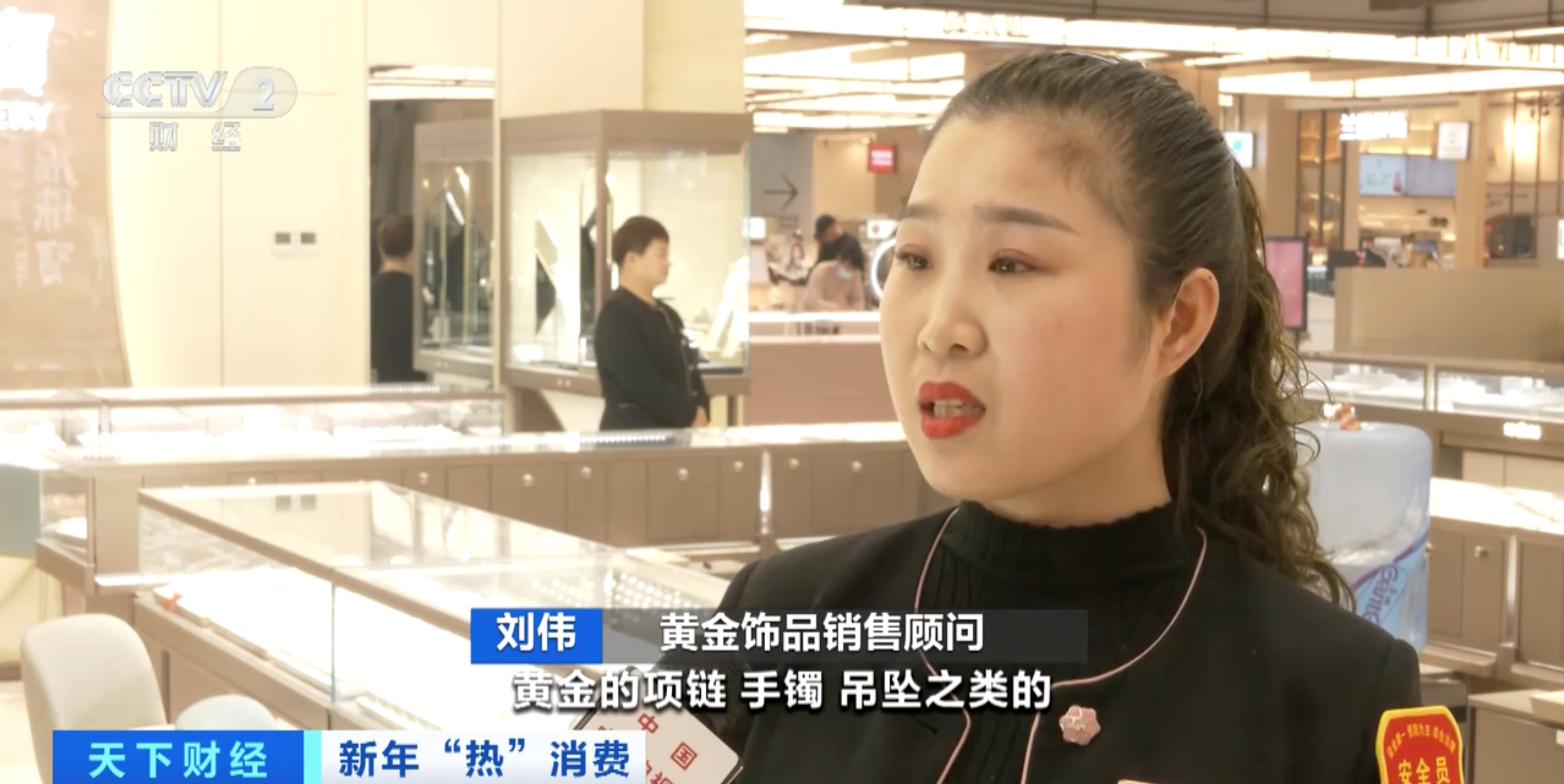 黄金饰品销售顾问 刘伟:需求量多的就是黄金项链、手镯、吊坠之类的。