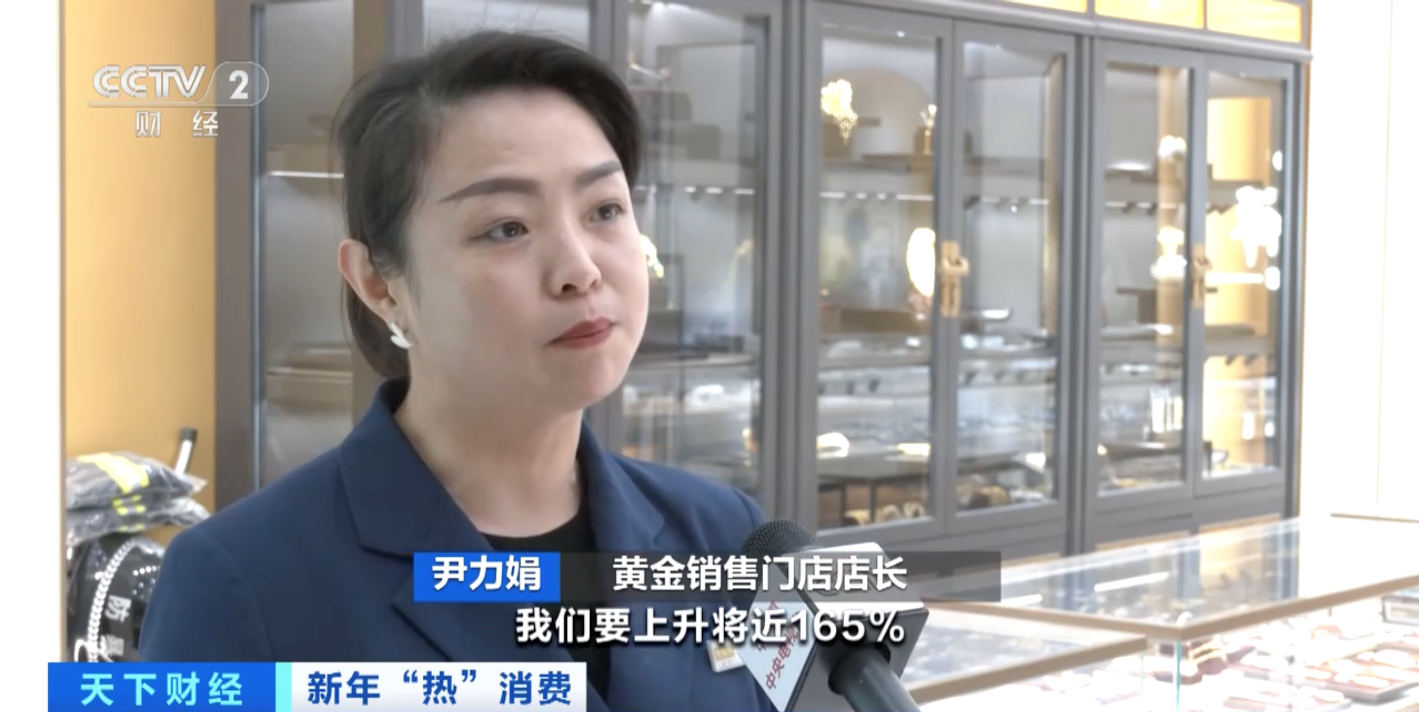 黄金销售门店店长 尹力娟:进入2023年12月份,销售额呈上升趋势,销售额环比2023年11月份,上升近165%。